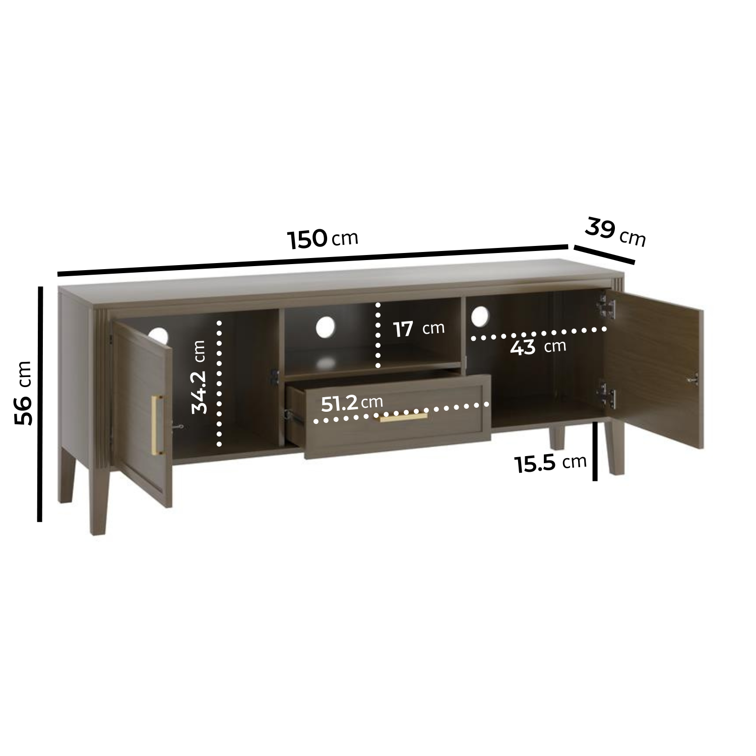 - Dimensions: H56 x W150 x D39 cm