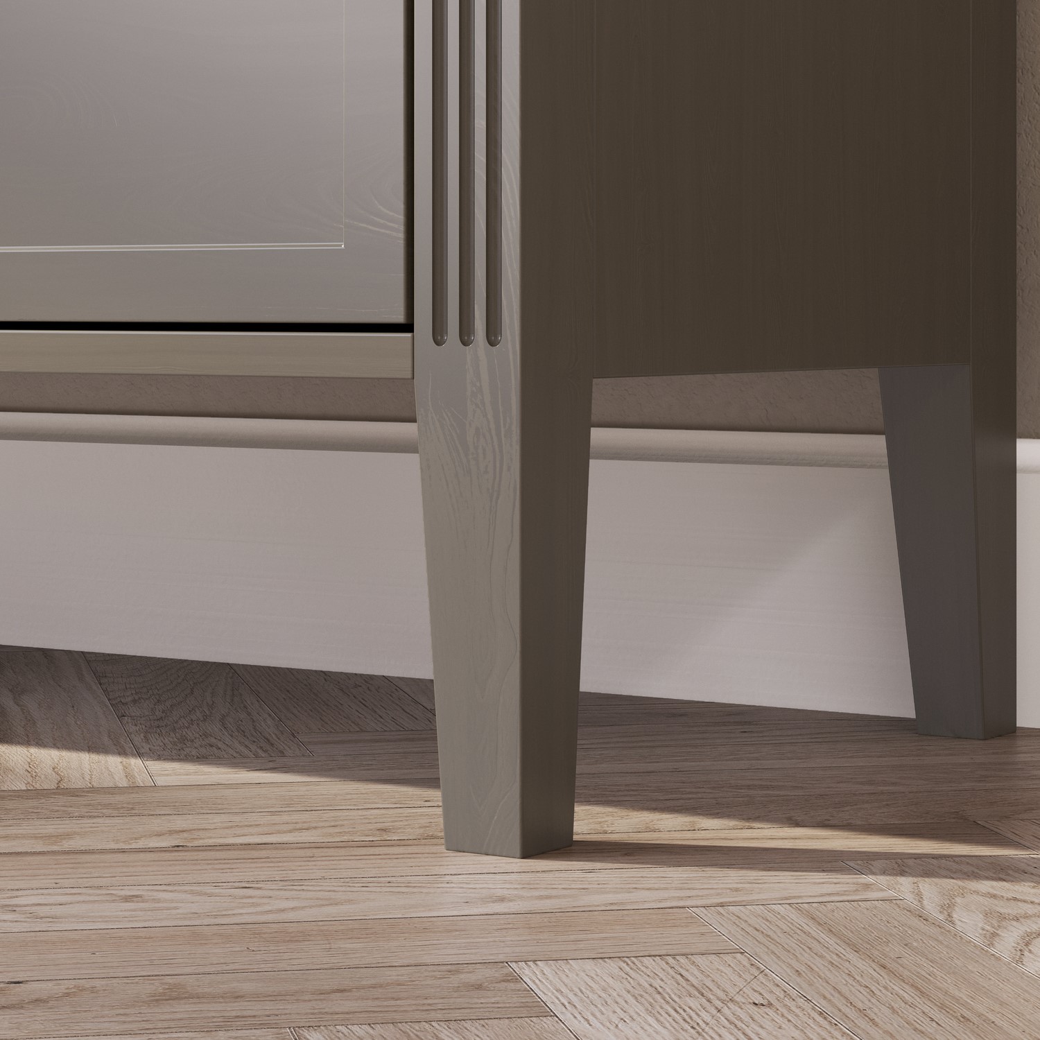 - Finish: Dark grey wash