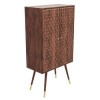 The Dejan tall drinks cabinet combines practicality and style to create the perfect centrepiece for your entertaining space. Crafted from solid mango wood, its natural finish highlights the wood’s beautiful grain, while the fluted door design with brass inlay adds a luxurious touch. Inside, a integrated wine glass holder, and multiple shelves offer ample space to store glassware, cocktail mixers, and other essentials. The tapered legs, complete with brass-capped tips, provide a sleek mid-century modern aesthetic.