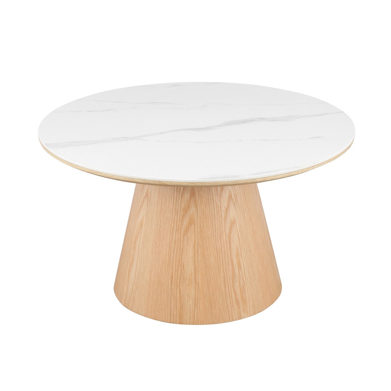 Versatile Aesthetic: The white matte marble effect ceramic top adds a luxurious touch while the natural oak veneer brings warmth and balance blending seamlessly with a variety of interior styles.