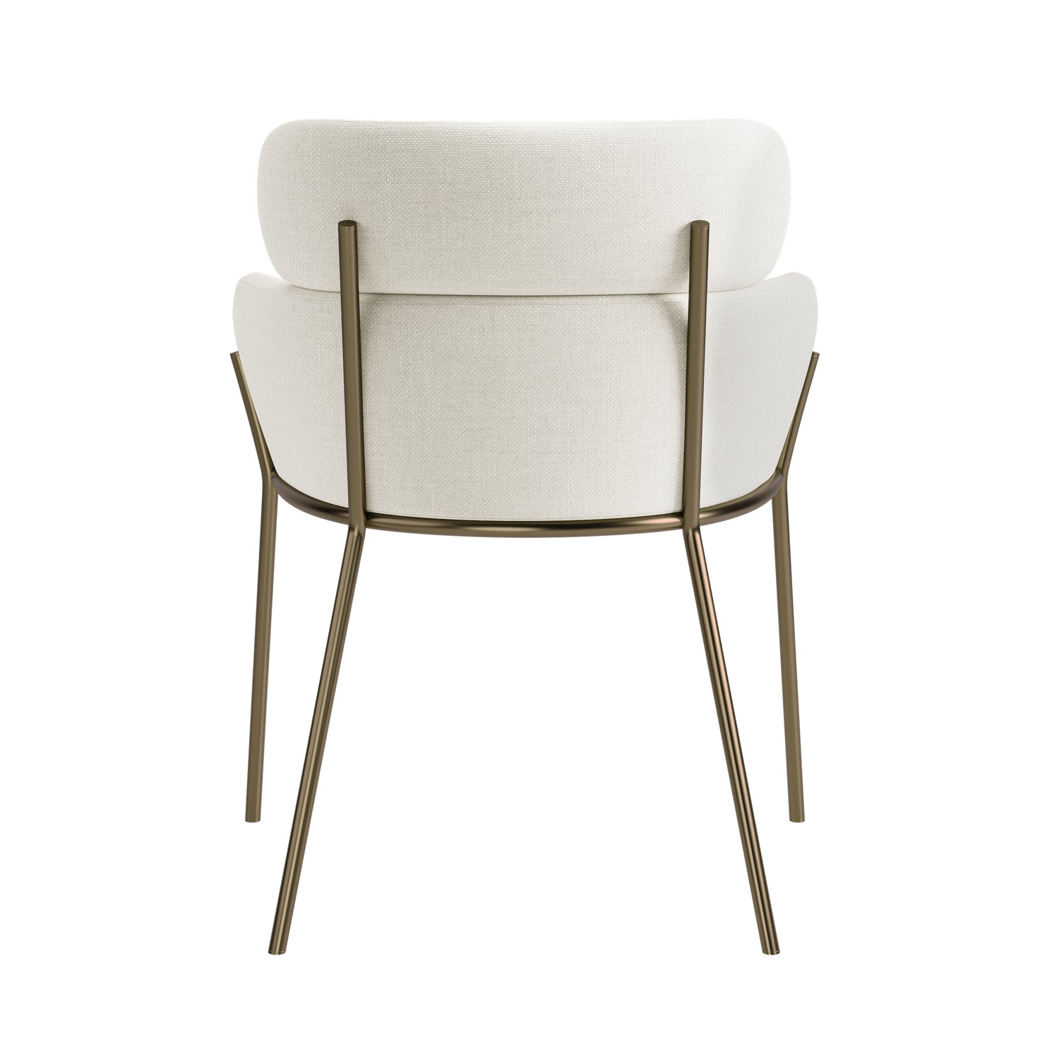 Comfortable & Elegant Seating: The Isla dining chairs feature cream chenille upholstery, adding a layer of tactile softness and visual warmth. The brass frame ensures stability and durability, while the brass frame adds a modern, stylish touch.