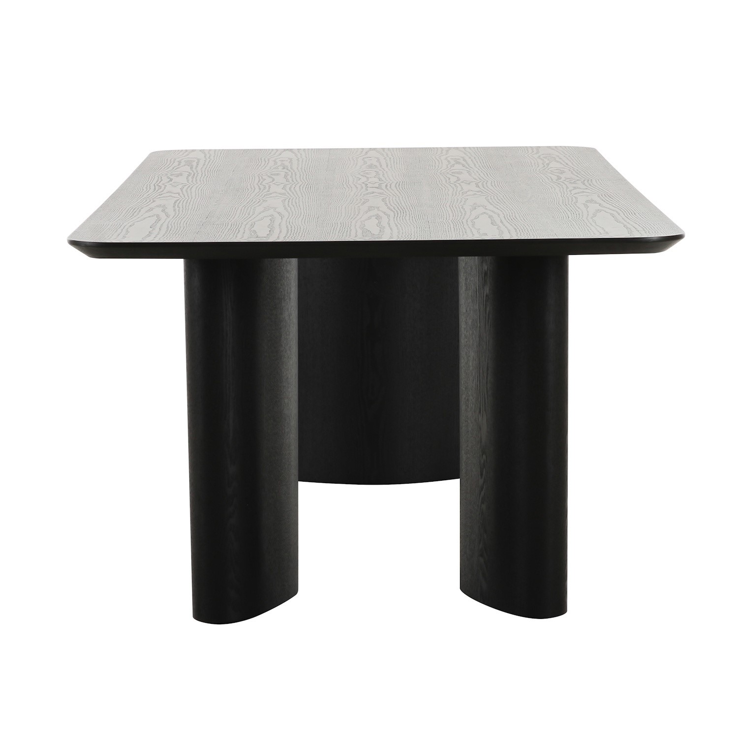 Black-Painted Ash Veneer Tabletop: The large rectangular surface comfortably seats six, offering plenty of room for family meals and entertaining, while the sleek black finish adds sophistication.