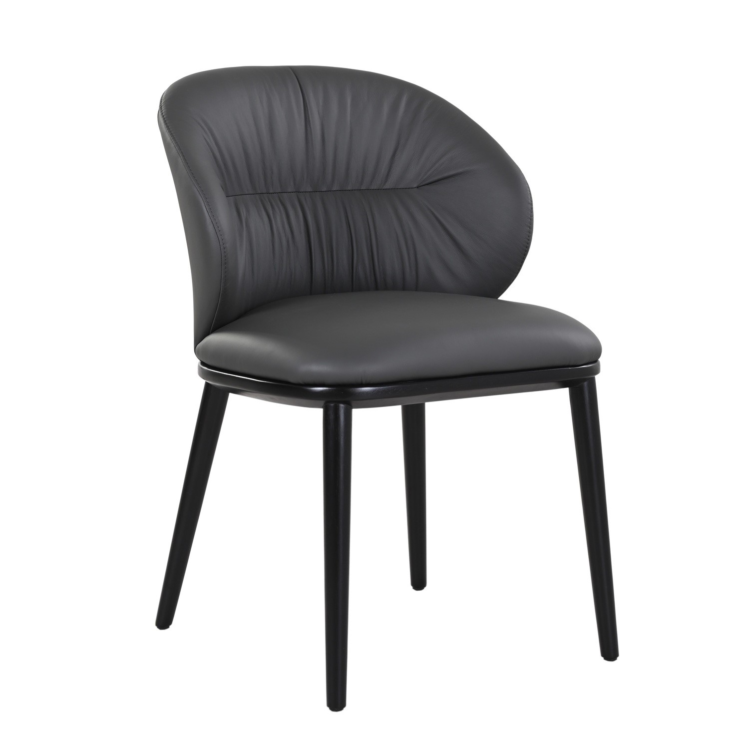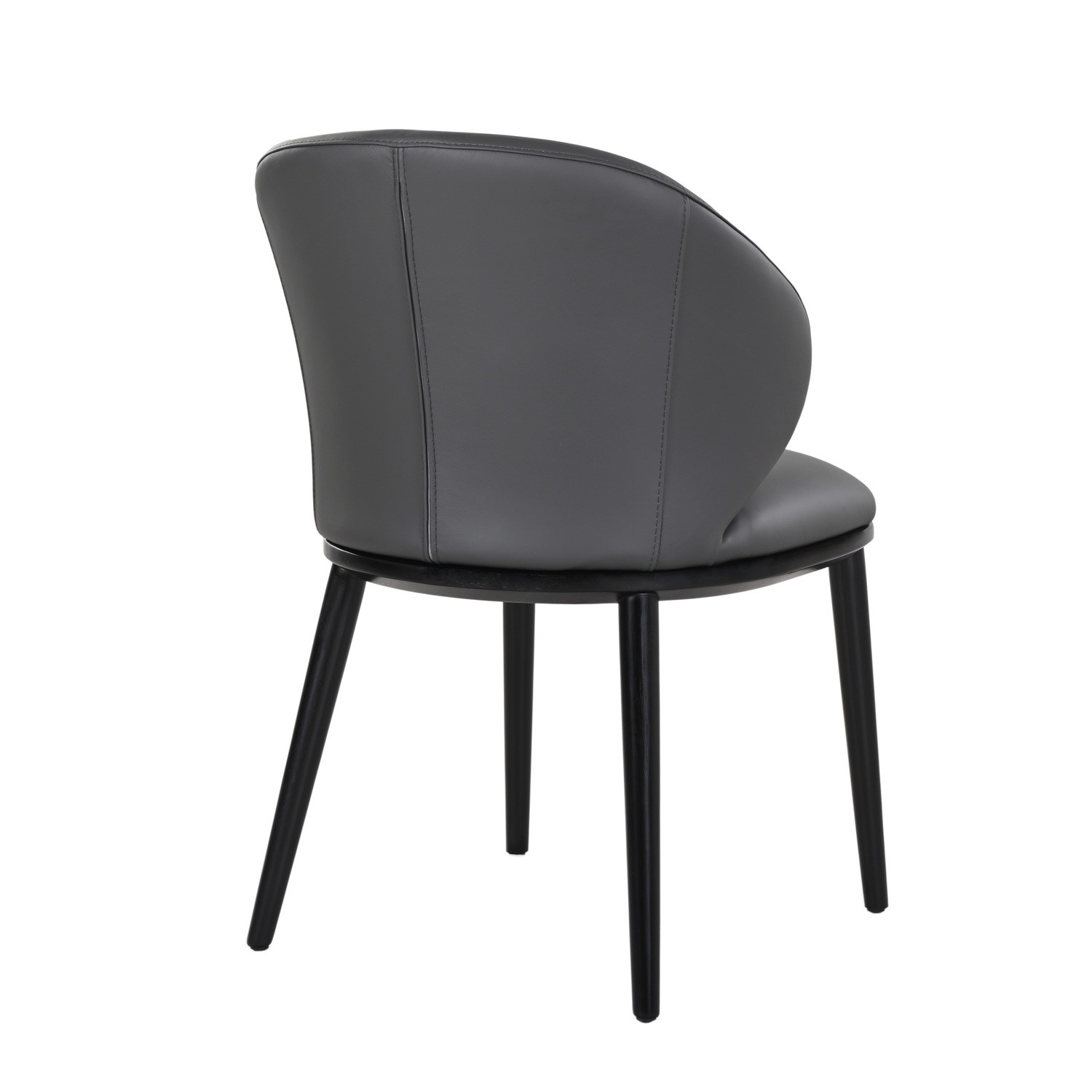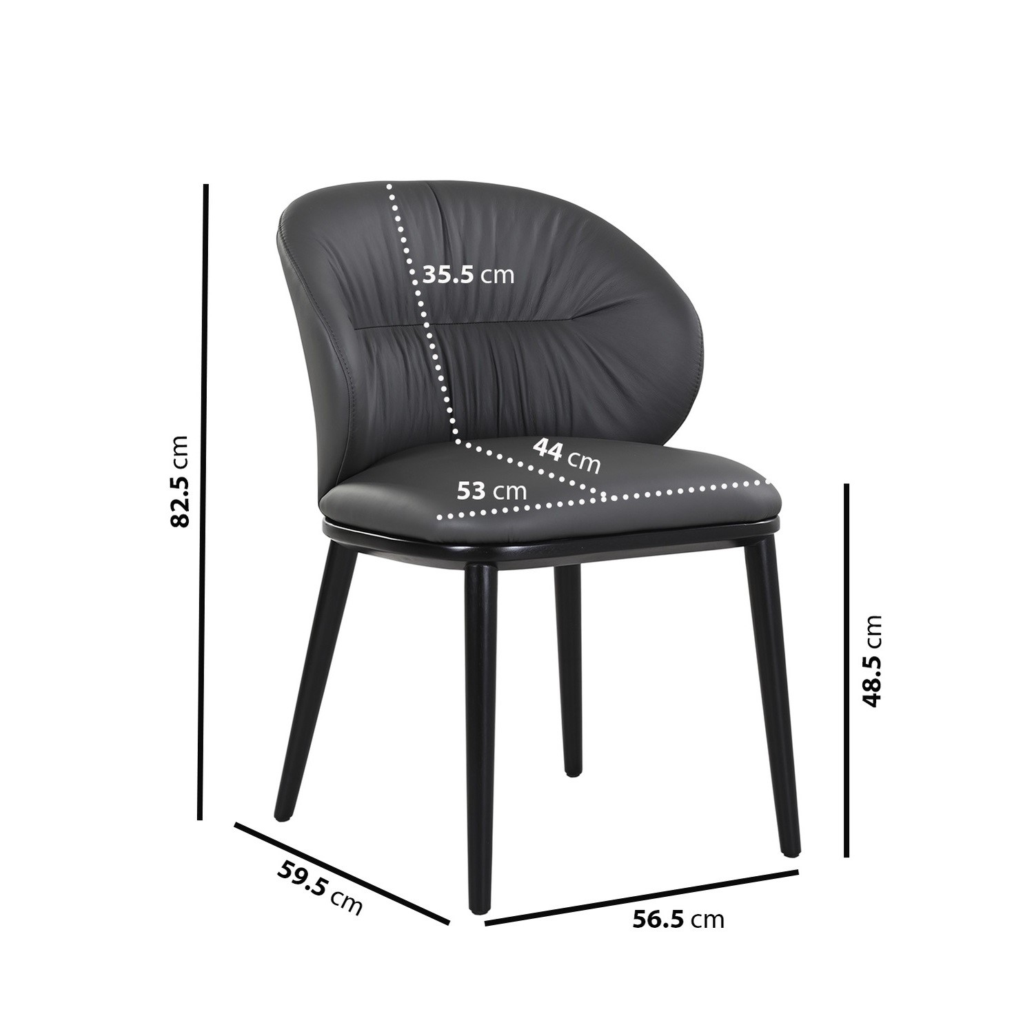 6 x Grey Real Leather Dining Chair with Black Legs - Eren