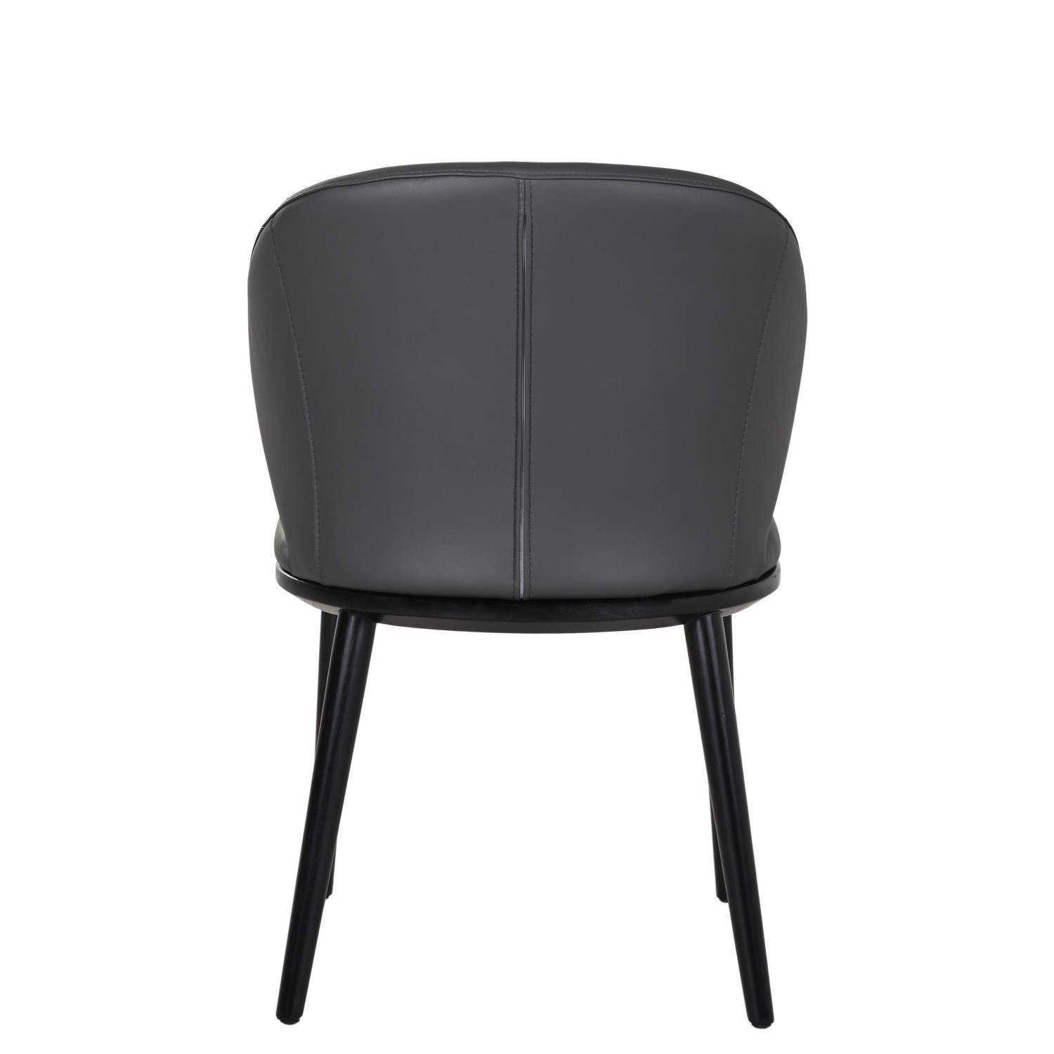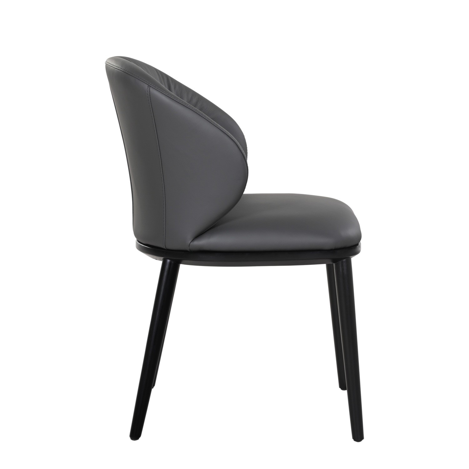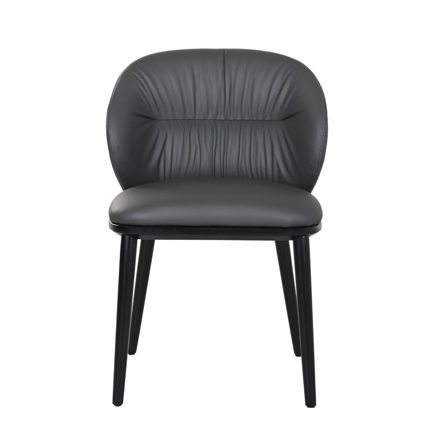 6 x Grey Real Leather Dining Chair with Black Legs - Eren