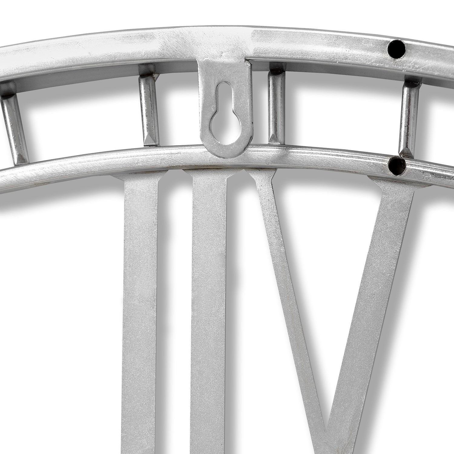 This large skeleton clock in nickel finish is an on trend clock that serves as a beautiful focal point for any room.
