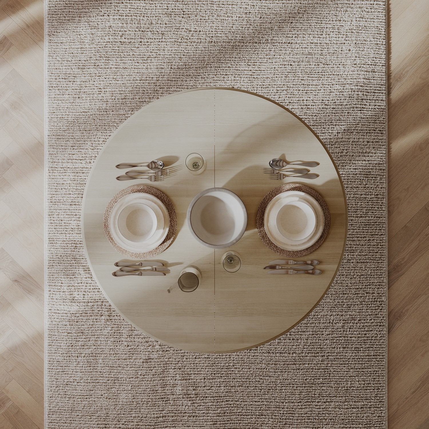 Extending Design: Features a single extension leaf that transforms the table from a round to an oval shape, easily accommodating more guests.