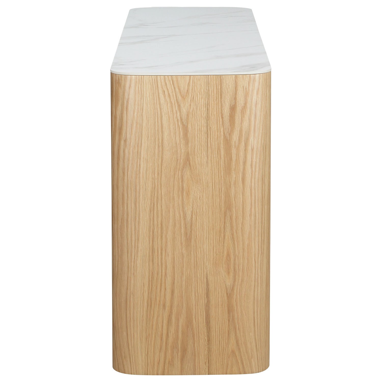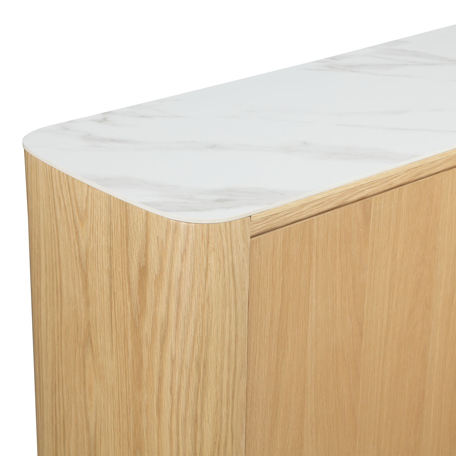 Contemporary Design: The Malia sideboard is a focal point in your living space. The marble effect top adds a luxurious touch while the natural oak veneer brings warmth and balance.