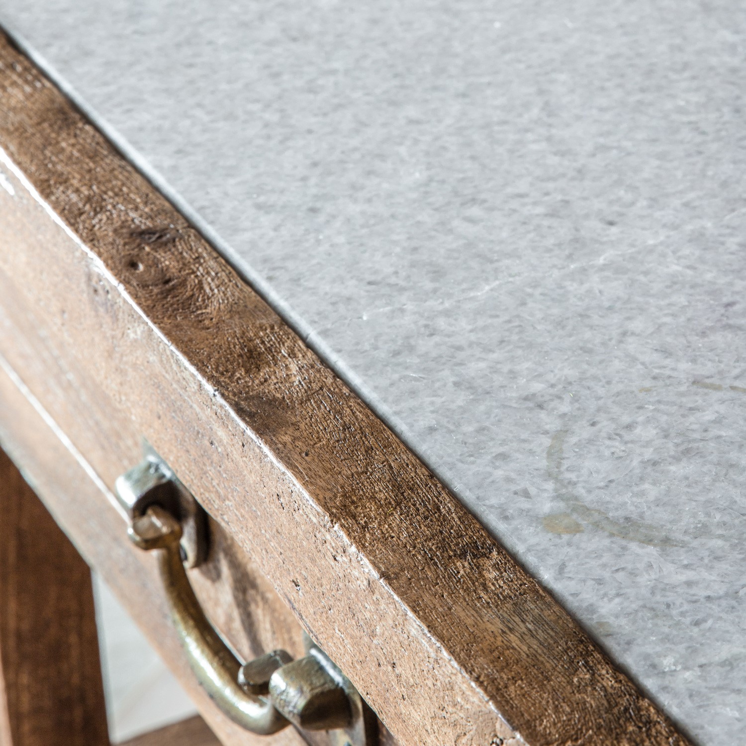 This kitchen island is the perfect mix of traditional and rustic design. It’s beautifully crafted from mango wood and the top is polished marble. It’s easy to clean too: use a damp cloth and follow the grain of the wood, then buff the marble.