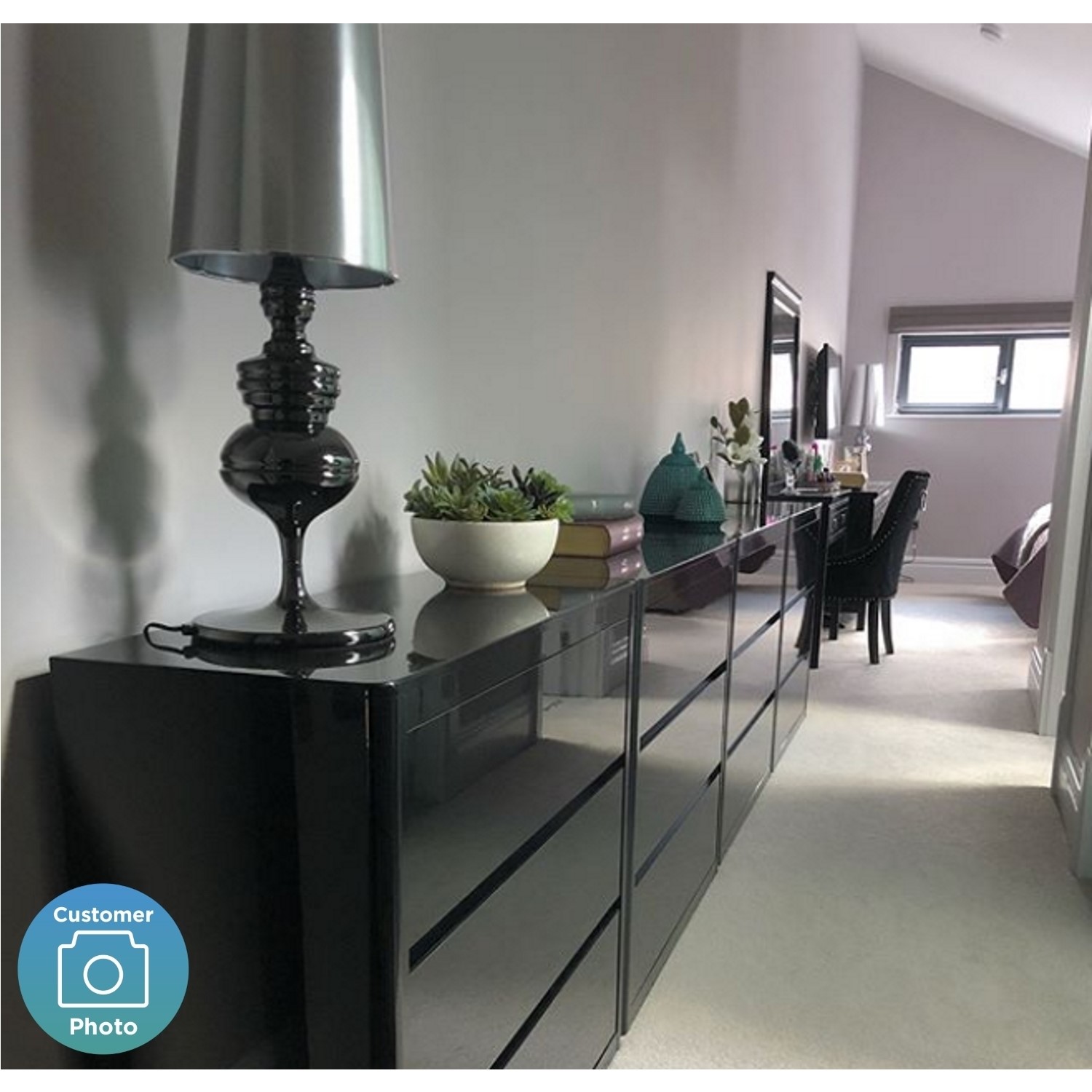 This chest of drawers will require self-assembly, but to make things a little easier the metal drawer runners are pre-installed. Each panel has a removable protective film in place, ensuring the glossy finish remains pristine during the assembly process.