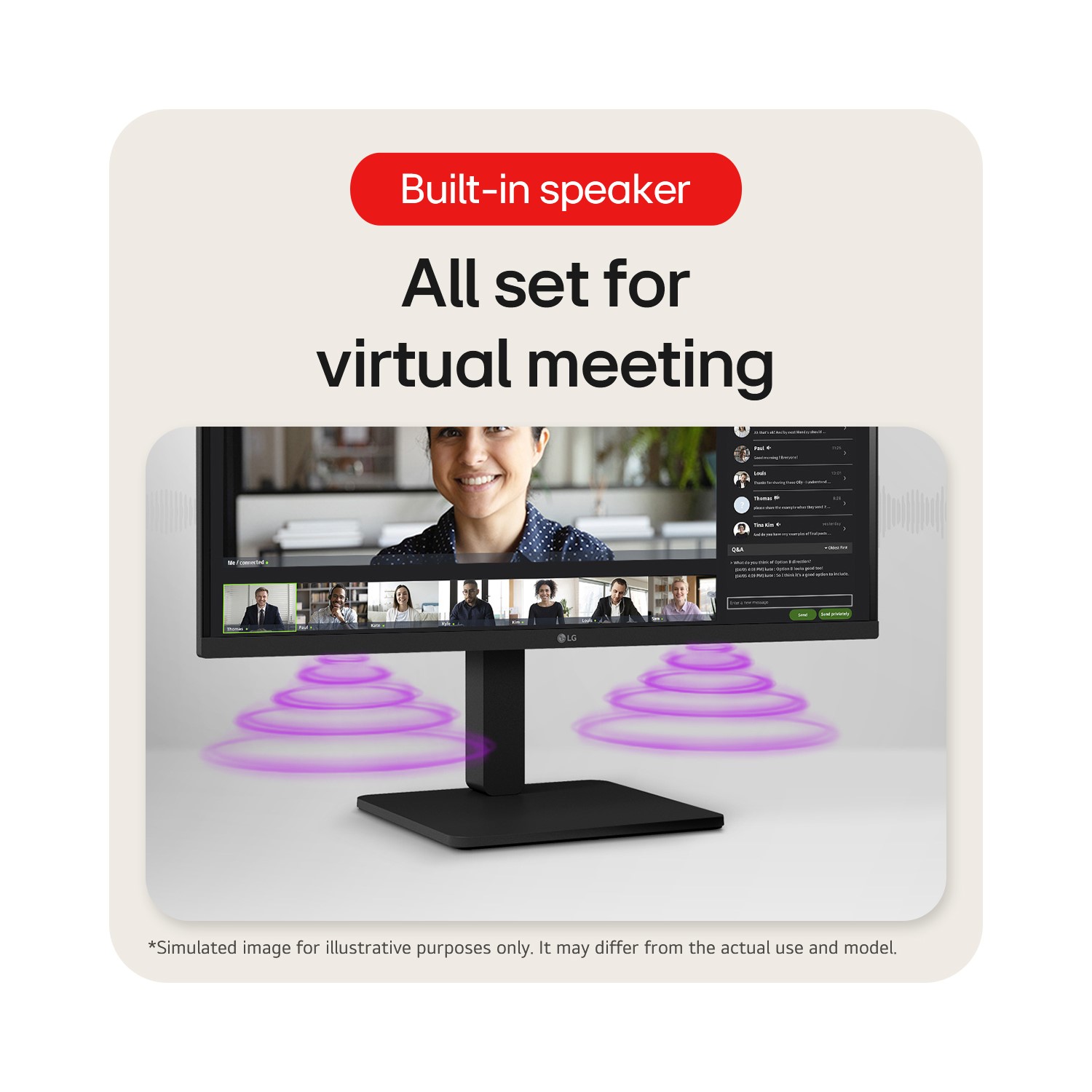 The 24BA450 comes with built-in speakers, eliminating the need for extra speaker installations when participating in web conferences or watching videos.