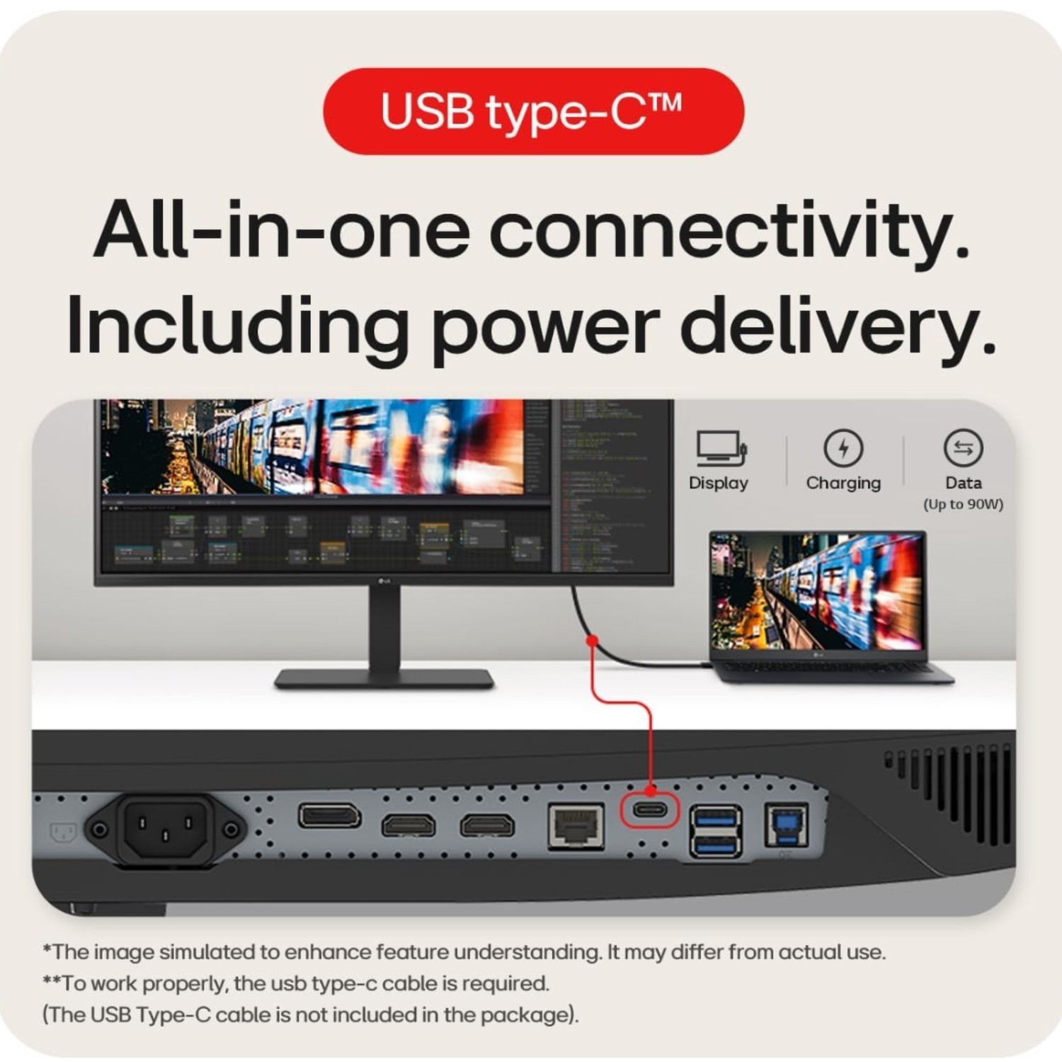 Connect your devices effortlessly with dual HDMI ports, DisplayPort, and USB-C. The USB-C port also supports power delivery, allowing you to charge compatible laptops while using the monitor as an external display.