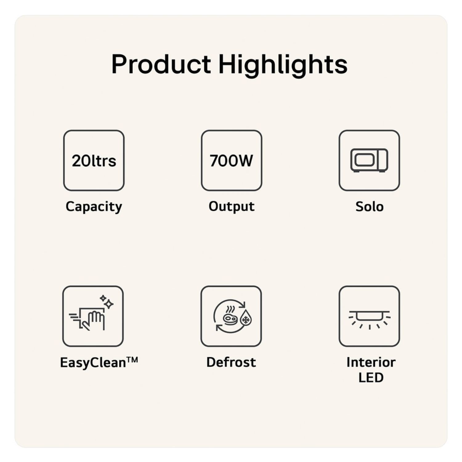 Compact, EasyClean Design • LED Display • Defrost & Auto Cook Functions