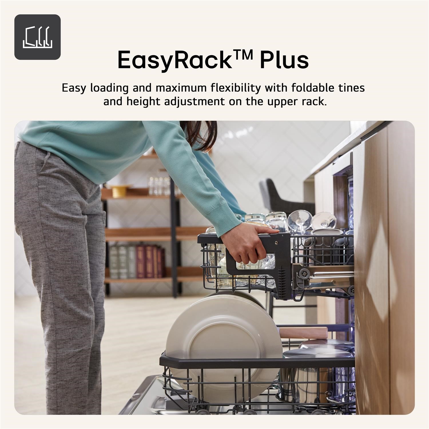 Load your dishwasher your way with EasyRack™ Plus. This clever system has three adjustable racks, folding tines, and vertical movement, making it simple to fit everything from tall glasses to large pots. Enjoy maximum flexibility and stop struggling to fit your kitchenware.