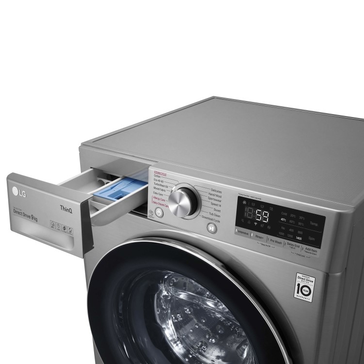 The LG F4V709STSE Washing Machine is designed to provide the perfect wash cycle in a shorter time, letting you get on with your day in peace. With TurboWash™, the F4V709STSE can get through a daily laundry load much faster than competing washing machines, without sacrificing wash quality. LG’s unique AI DD™ feature, 3rd Gen Beltless Direct Drive™ automatically detects the type of clothes within your laundry and calculates the optimal drum movement. LG ThinQ™ also lets you control your washing machine on your smartphone, perfect for ensuring that your clothes are clean by the time you come home. In addition, LG’s unique Steam™ technology allows you to go one step further, offering a hygienic clean like no other machine by eliminating 99.9% of allergens found in your clothes. For added convenience, the F4V709STSE now boasts a bigger drum in the same sized body, letting you tackle more clothes than ever in a single cycle.