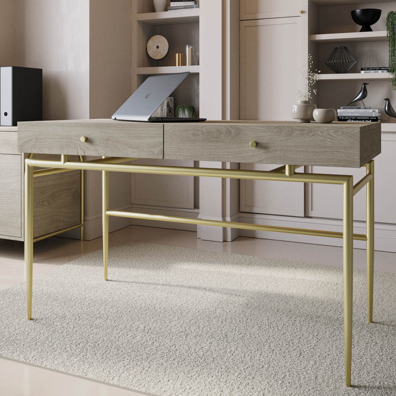 Work in style on this large Chester office desk. The metal frame ensures a sturdy construction, plus the light oak and gold finish are a modern combination that’ll update your home study or office instantly.