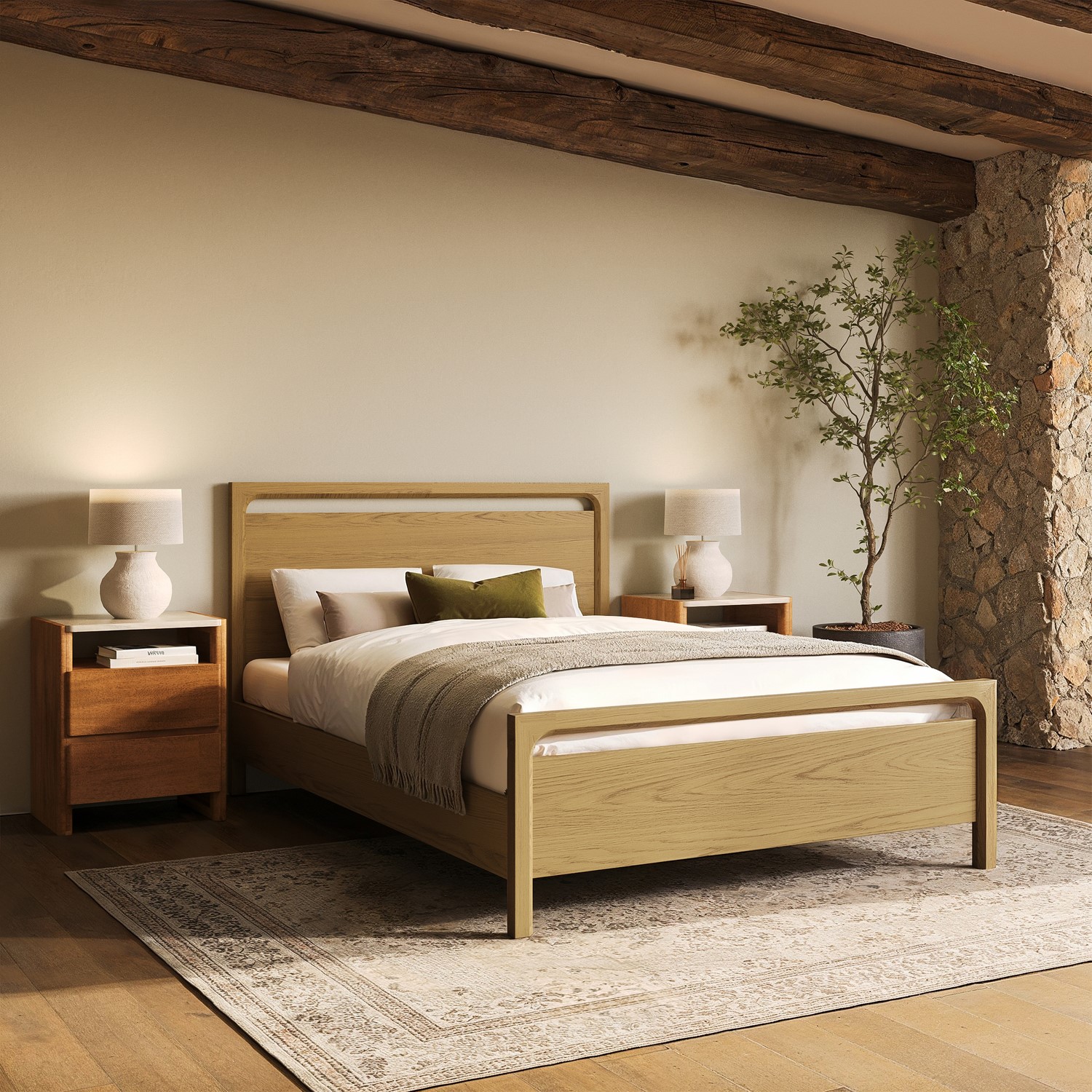 Solid Light Oak Wood: Crafted from solid oak and oak veneer, the light oak stain brings organic beauty and warmth to your bedroom.