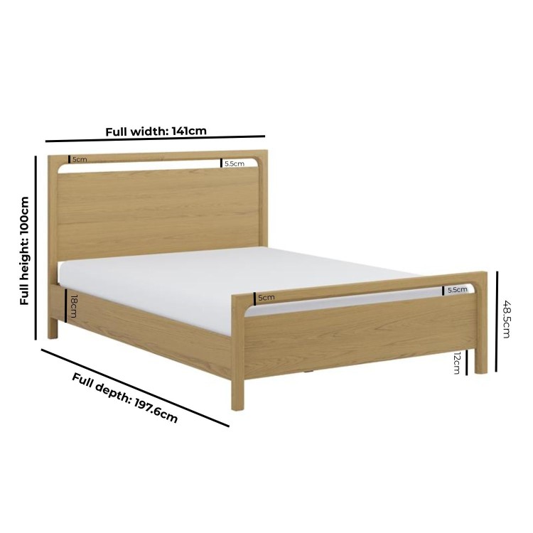 Elevate your bedroom with the Vixen wooden bed frame. Crafted from solid oak and oak veneer, this bed creates a perfect blend of timeless mid-century design and modern sophistication. Due to the nature of the natural wood, each piece will be unique due to the variation of the real wood grain. All materials within this product are sourced from sustainable forests. The versatility of this oak bed creates visual interest whilst maintaining the minimalist aesthetic, clean lines, and natural materials. This bed fits a UK standard double-size mattress.