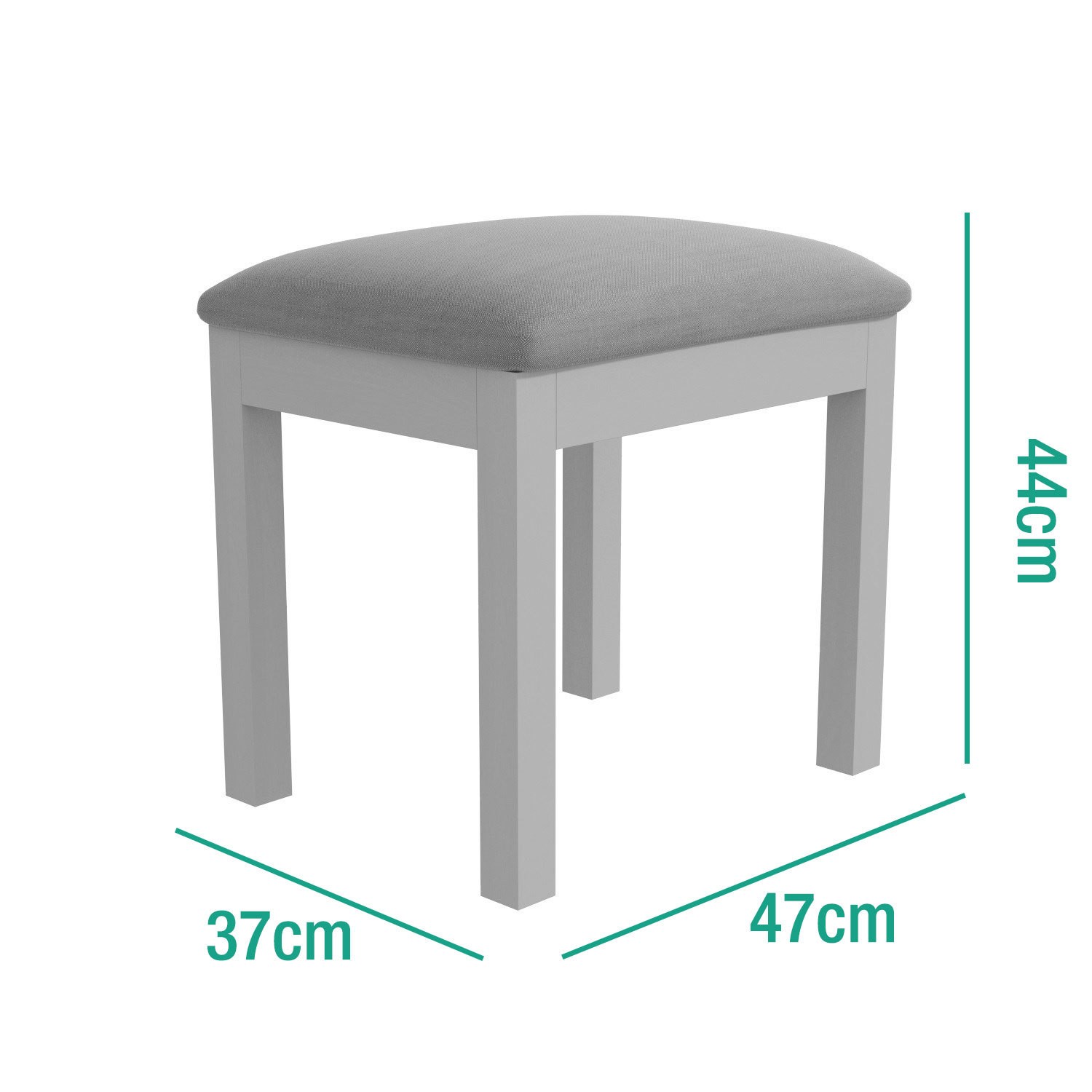 The Loire dressing table stool is highly versatile, it’s been designed to complement the Loire dressing table, fitting snuggly below, but there’s no reason why you couldn’t combine it with something else. With a soft grey frame and a neutral grey fabric seat, it will easily work beautifully in both traditional and modern homes.