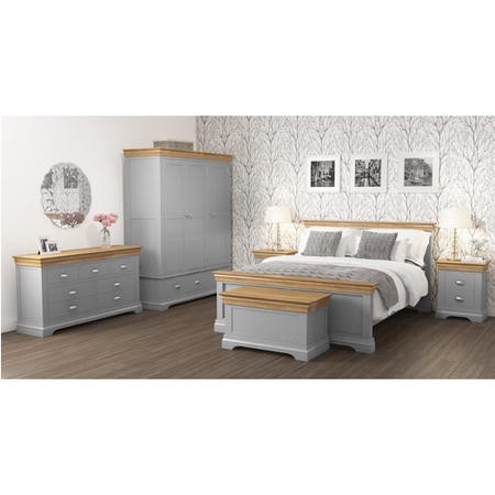 Carefully crafted the Loire King size bed delivers style, practicality and durability. The distinctive two-tone design has been made from solid acacia wood with a soft grey, painted finish and contrasting, solid oak with real oak veneer finishes for enhanced durability.