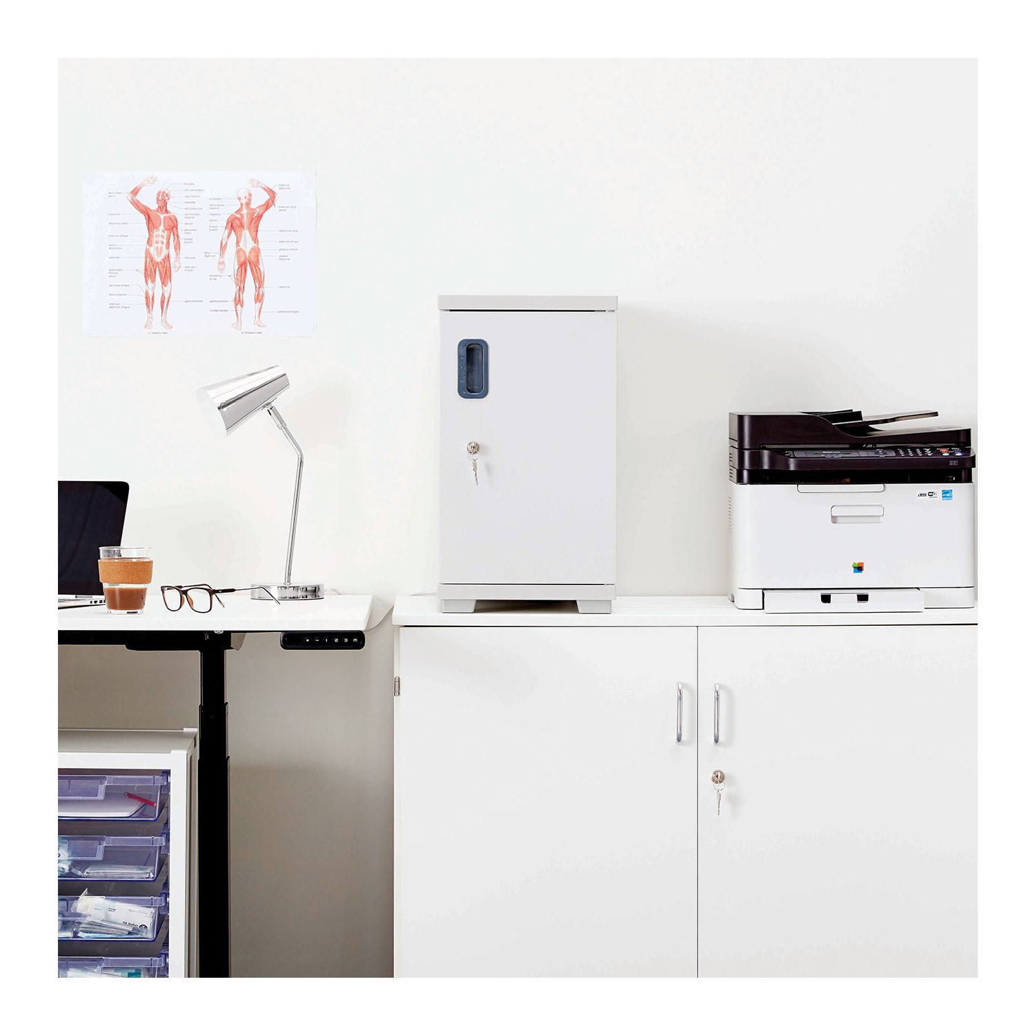 Small and compact dimensions make it perfect for use in busy areas where space is limited such as classrooms, hospital wards, staff rooms, industrial and commercial buildings. Front door opens 270 degrees to allow full and unrestricted access to devices.