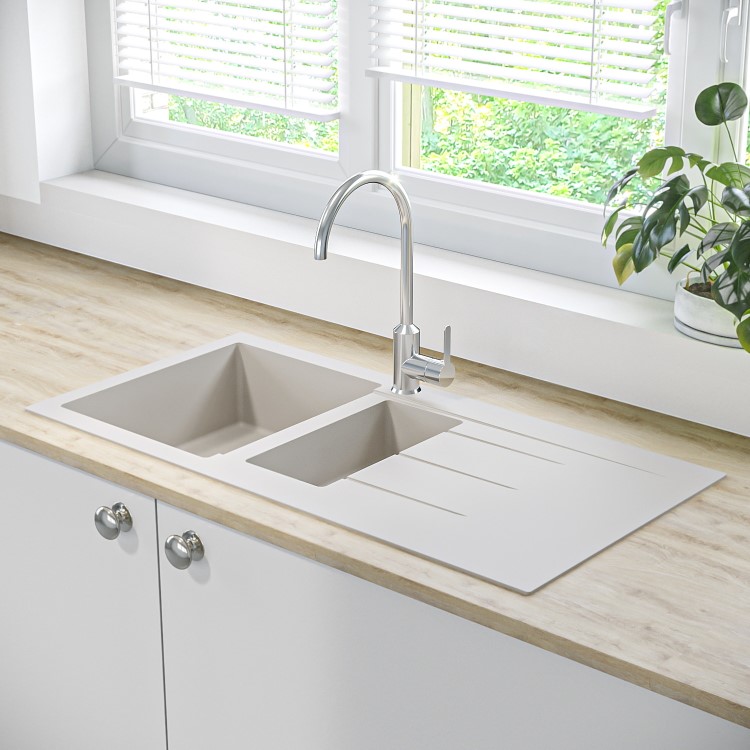 - Features 1 main bowl and a second practical half bowl and sloped drying area