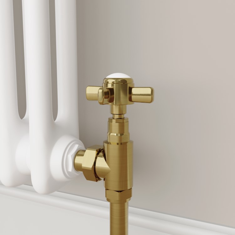 This pair of traditional angled radiator valves feature a high-quality chrome finish and ergonomic crosshead handles, perfect for adding a finishing touch to traditional or designer radiators and heated towel rails. Featuring a 1/2" thread, these chrome valves are compatible with all our radiators – including heated towel rails, column radiators, panel radiators, vertical flat tube radiators, and aluminium radiators.