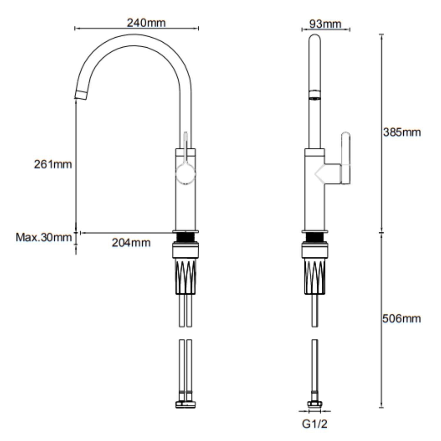Give your kitchen a bold, contemporary look with the Mcalpine Torridon Matt Black Side Single Lever Kitchen Mixer. Featuring eco-friendly Chrome 3+ plating, it’s a safer, low-toxicity alternative to standard chrome and more energy-efficient to produce. The single lever provides precise control over water flow and temperature, while the Eco Start cartridge helps save energy. With WRAS/ACS approvals, a fast-fit nut for quick installation, and a 15-year warranty plus 10-year cartridge guarantee, this mixer combines modern style with lasting reliability.