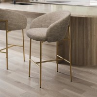 This Cora kitchen stool is a perfect addition to any kitchen space. The mink textured fabric matches any interior, and the brass legs and unique frame contrast beautifully. Design features exposed back detailing, adding a touch of modern neutral elegance to your kitchen area. On trend low curved back shaping for ultimate comfort.
