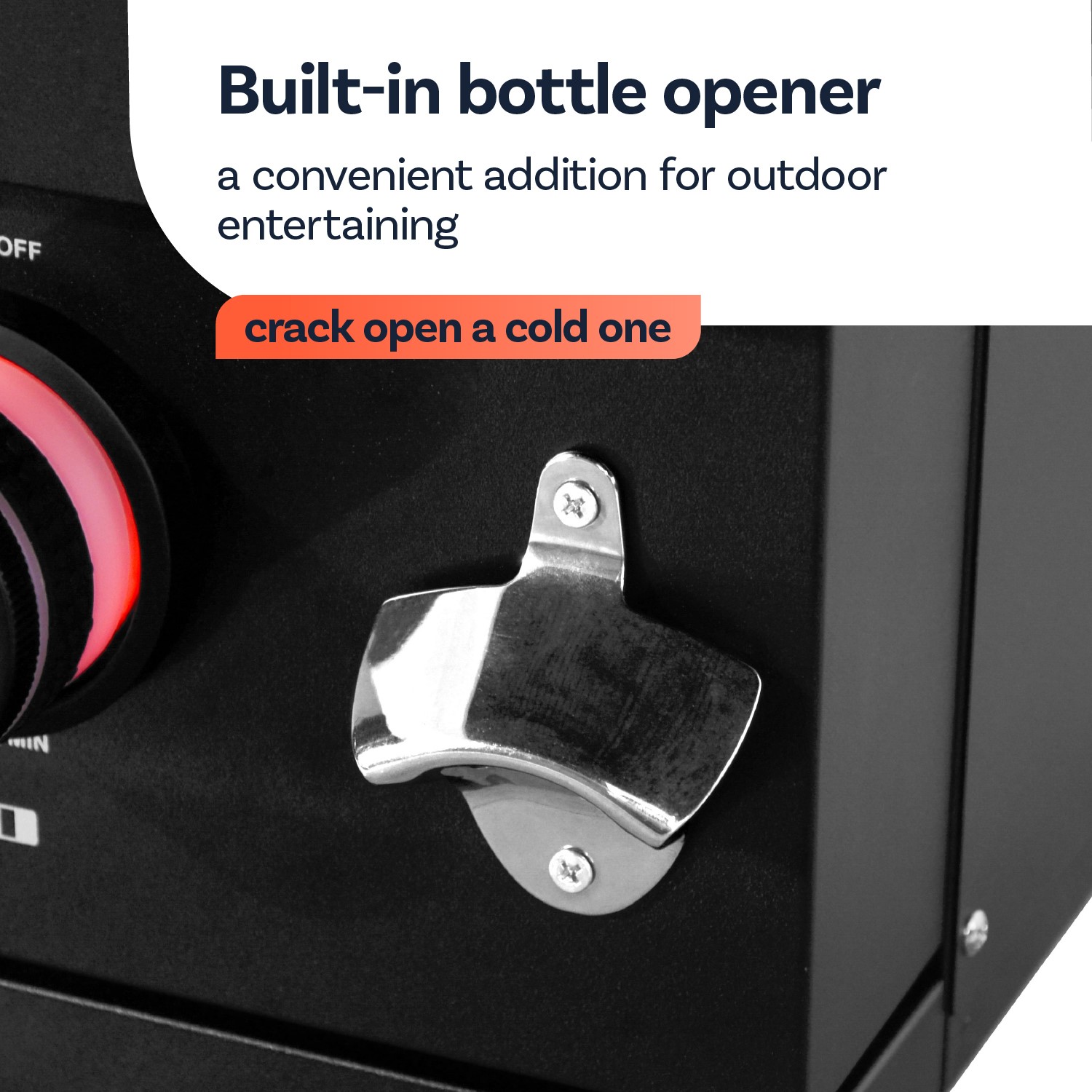 Two-colour LED illuminated control knobs, this grill offers a bold, premium look while making it easy to see burner status day or night. Practical touches include a built-in bottle opener for entertaining and a front pull-out drip tray for quick, hassle-free cleaning.
