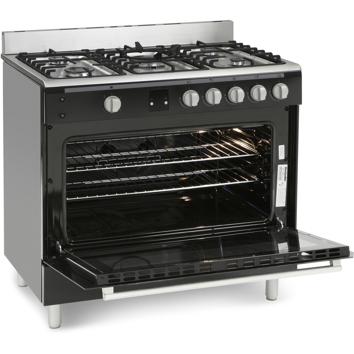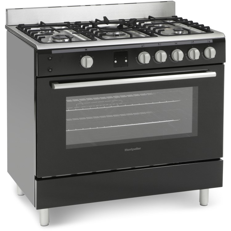 Montpellier 'Essentials' 90cm Range Cooker, All Gas, Single Cavity in Black, Multifunction, Cast Iron Pan Supports, 2 Year Guarantee.