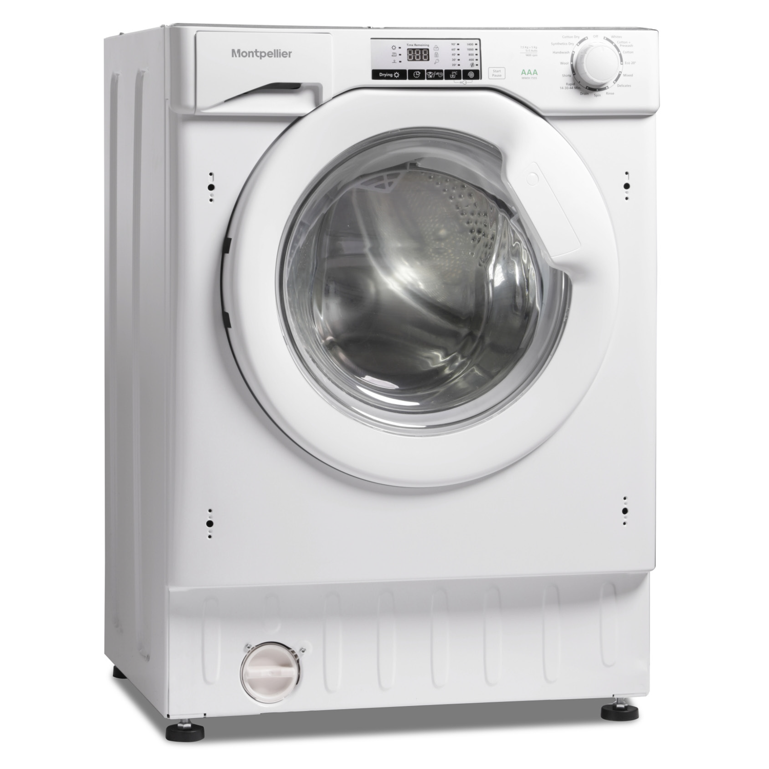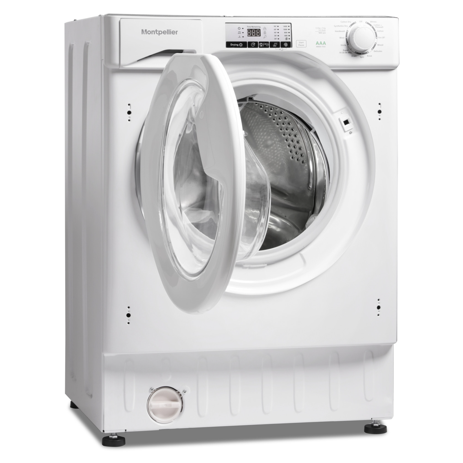 This Montpellier MWDI7555 White Integrated Washer Dryer is ideal for a medium sized household with a 7.5kg washing capacity, 5kg drying capacity and a 1400rpm spin speed. With an A+++ Energy Efficiency Rating, this model is not only economical in reducing the impact it has on the environment, it can also save you money on your energy bills. With a range of 16 programmes, 14 for washing and 2 for drying, which range from whites, cottons and colours to synthetics, delicates and handwash cycles. With only a 51dB washing noise level, this quiet machine will offer little disturbance, in addition to having a start timer delay to fit around busy lifestyles.