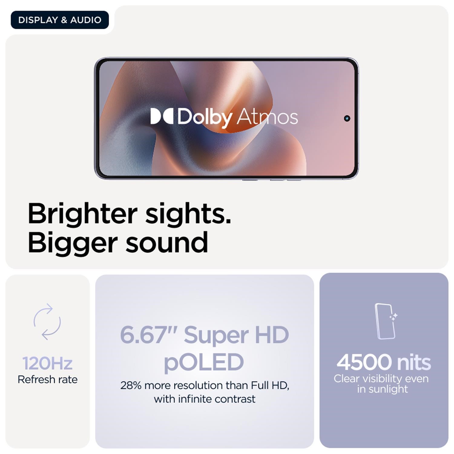<b>Bold design. Big adventures.</b><br>For those who push the boundaries in life, introducing moto g86 5G. Beautifully crafted from premium materials, it stands out with a bold design featuring advanced water and drop protection(6,7). View everything on an ultra-bright 6.67" Super HD (1220p) display backed by Dolby Atmos® sound. Capture stunning photos with the 50MP Sony LYTIA™ 600 camera powered by moto ai(12), and effortlessly shoot like a pro. Get over 41 hours of battery life in just minutes of TurboPower™ charging(1,13). Feel the power of an advanced processor and 8GB—expandable to 24GB with RAM Boost—and up to 256GB of storage(3,9). And empower your creative freedom, effortless interactions, and peace of mind with exclusive Moto experiences. Embrace life’s adventures with moto g86 5G.