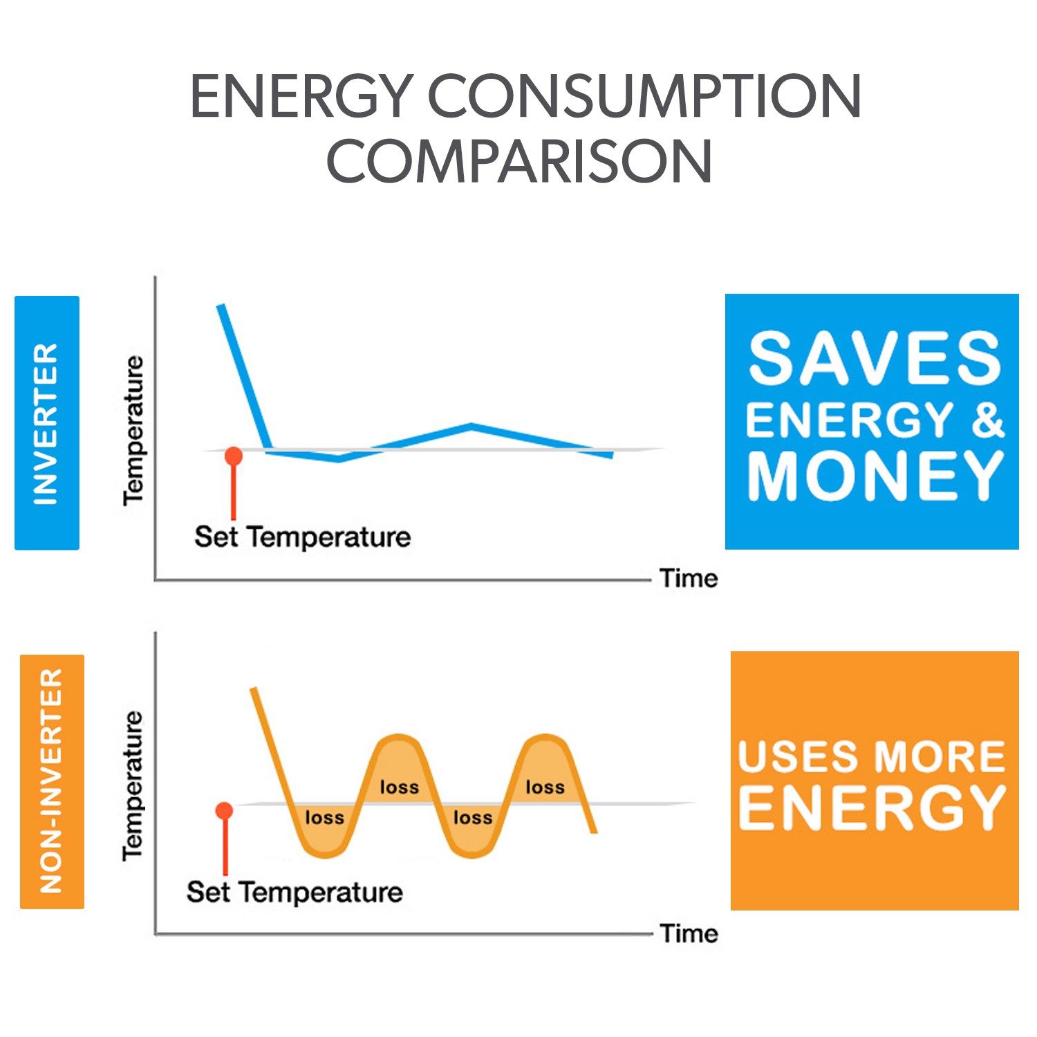 This wall-split AC operates at an average cost of about 36p per hour. However, thanks to its variable compressor speed, it can potentially use as little as 6p.