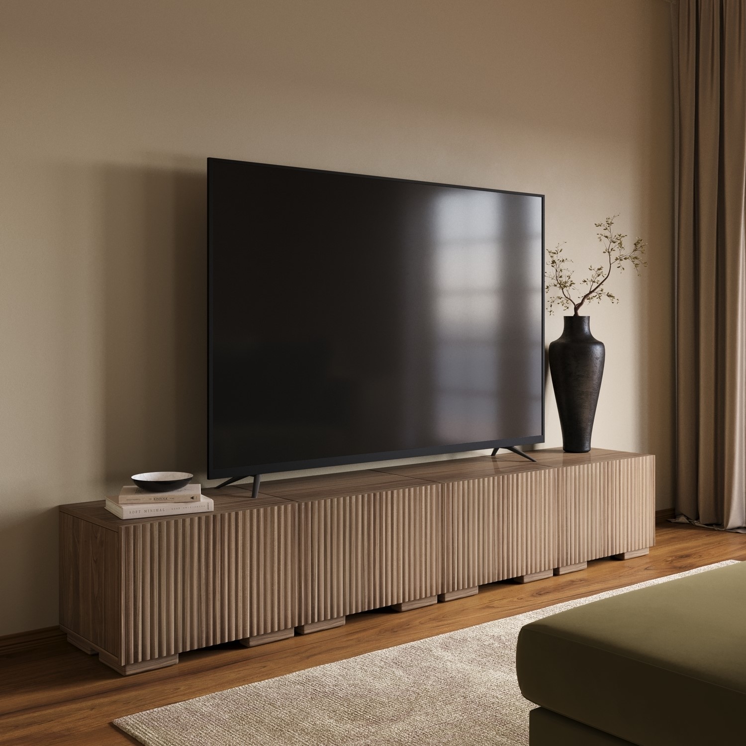 Featuring a textured, fluted exterior, this TV stand blends effortlessly with modern or minimalist decor.
