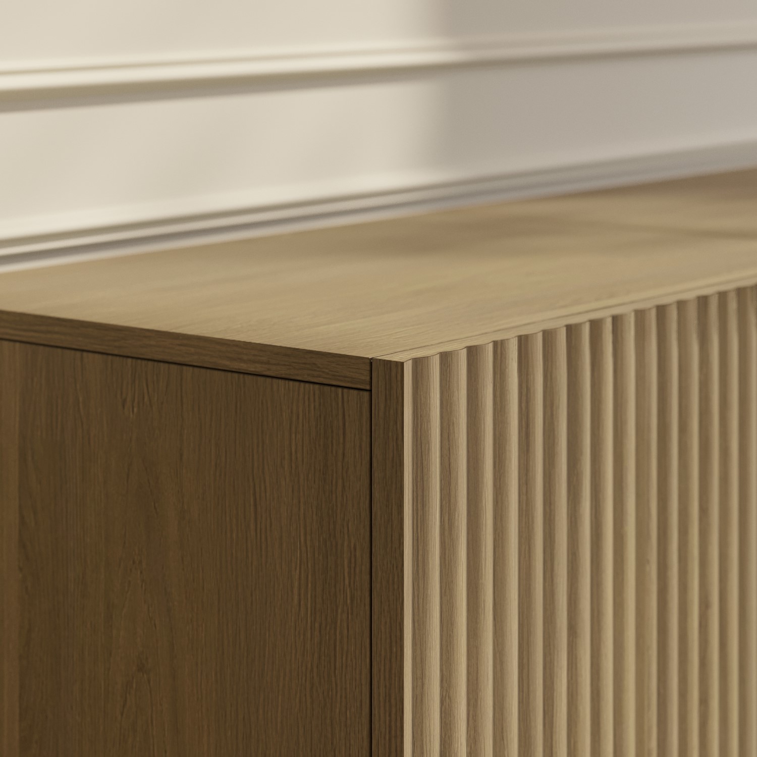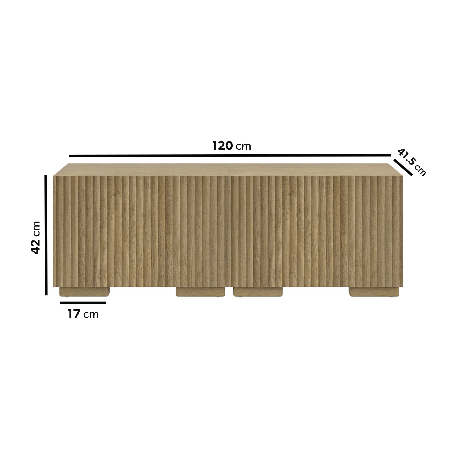 Featuring a textured, fluted exterior, this TV stand blends effortlessly with modern or minimalist decor.