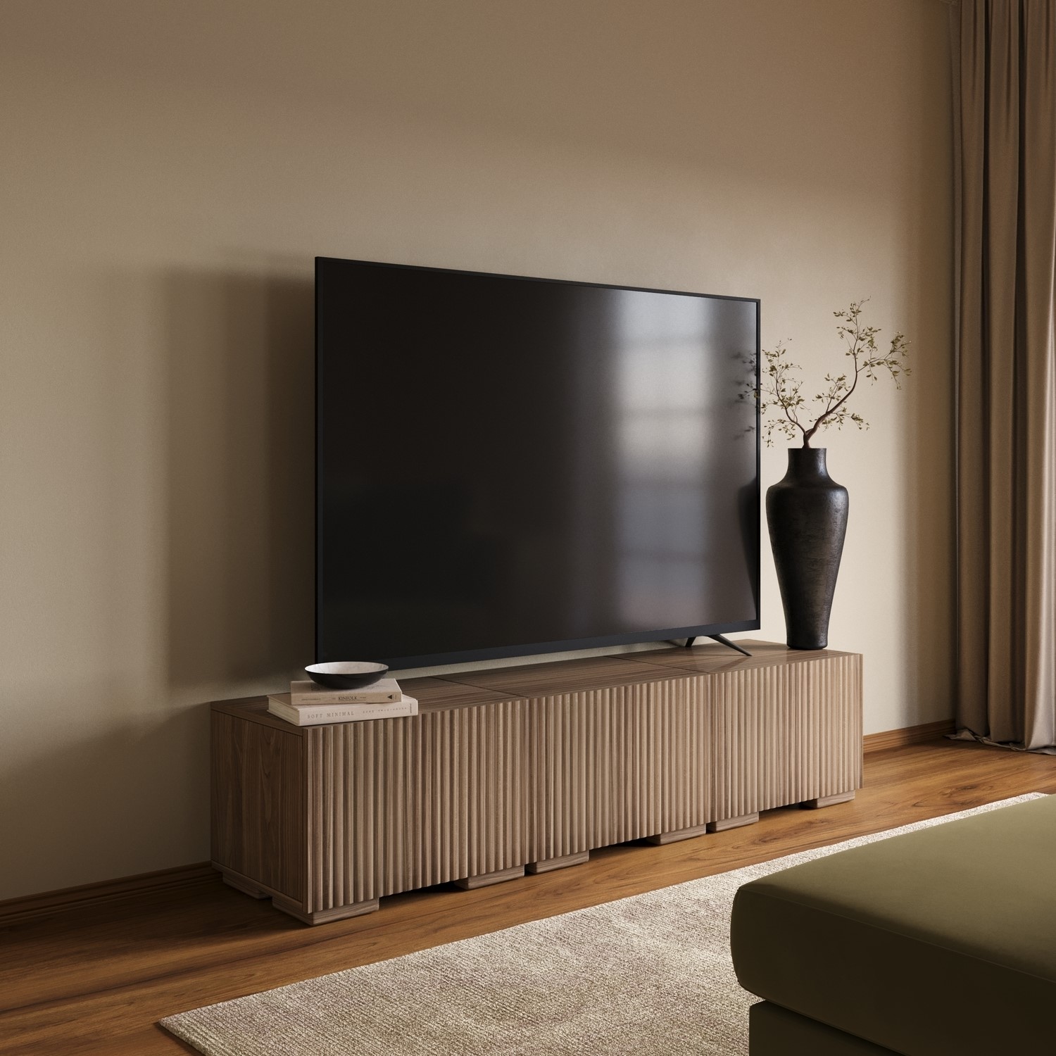 Featuring a textured, fluted exterior, this TV stand blends effortlessly with modern or minimalist decor.