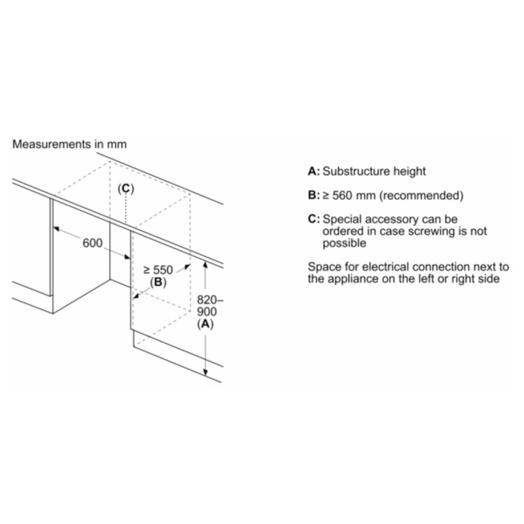 - Dimensions are 820mm (H) x 598mm (W) x 548mm (D), designed for seamless under-counter installation.