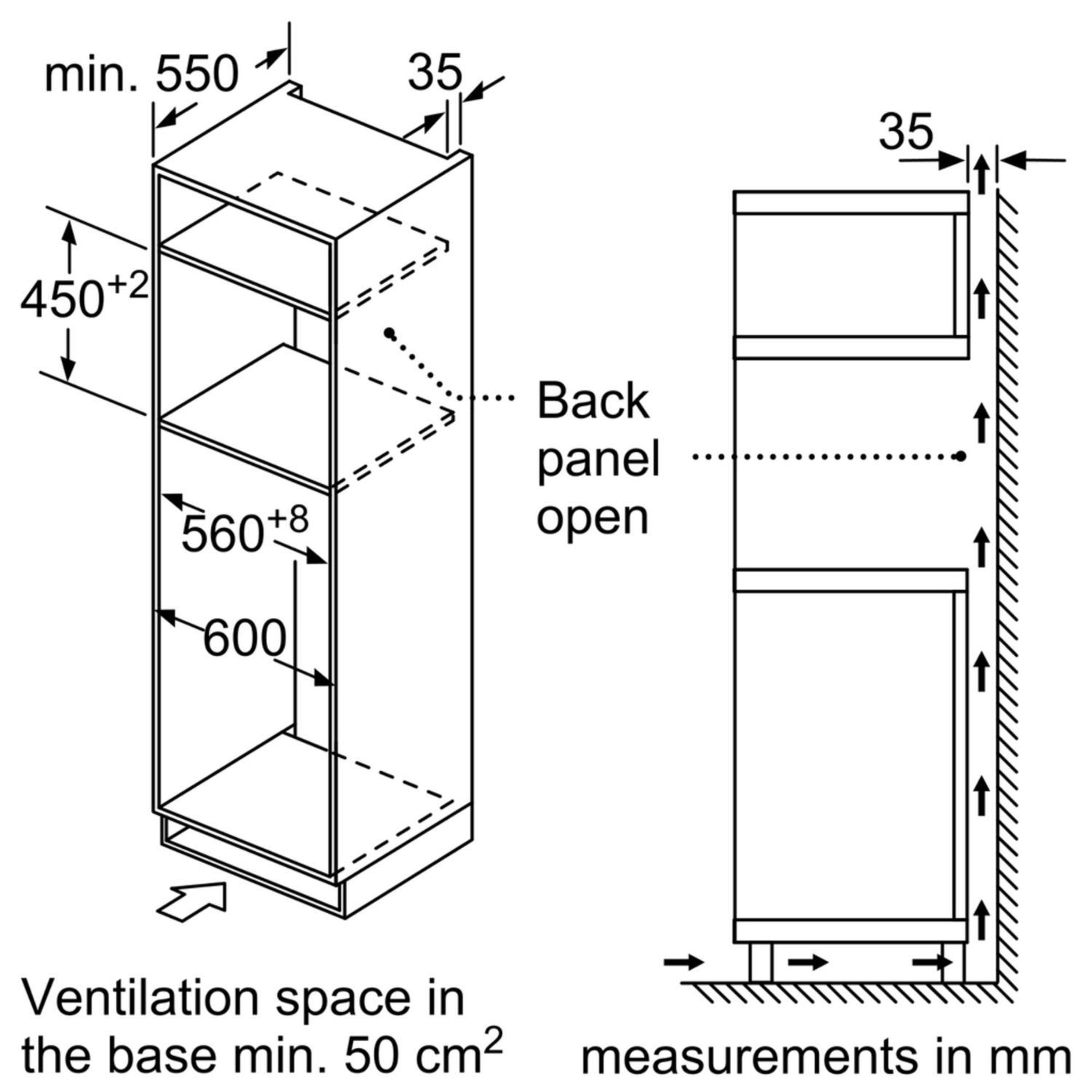 - Niche dimension (hxwxd): 450 mm - 458 mm x 560 mm - 568 mm x 550 mm