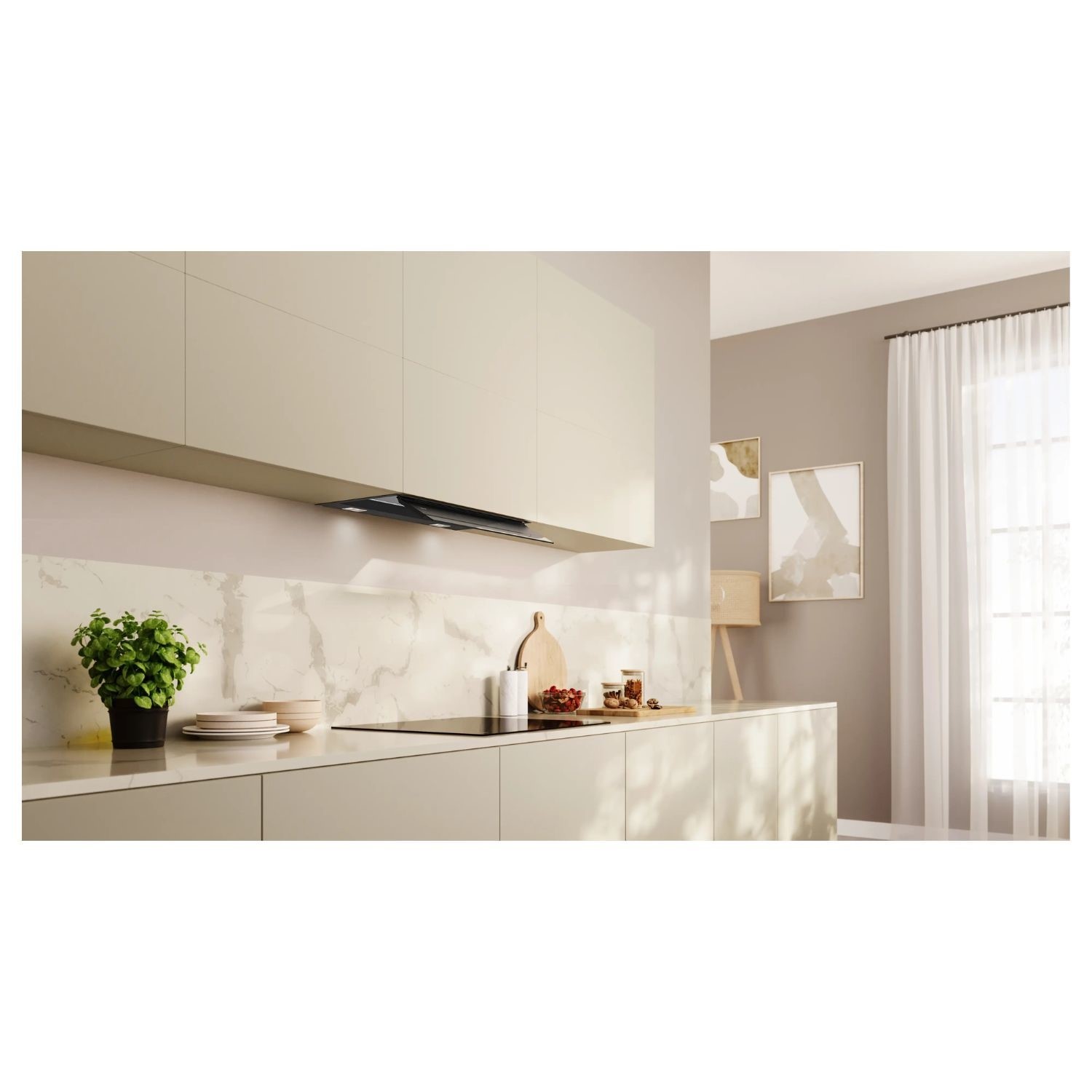 Listen to your own kitchen history. The optimised low-noise and powerful Efficient Silent Drive Motor ensures a quiet cooking experience. It delivers maximum performance at optimal energy consumption. The hinged glass panel with touch control captures steam and odours. And the easily accessible metal grease and Long-life Clean Air Filters significantly reduce odours and pollen. Simply powerful and efficient.