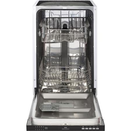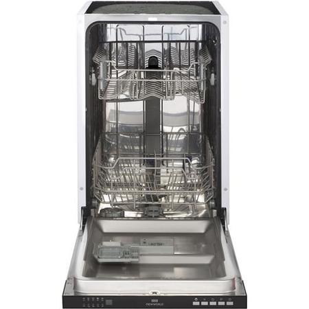 This Newworld INDW45 fully integrated slimline dishwasher is compact and perfect for smaller kitchens, whilst still being able to clean up to 9 place settings at once, for efficient cleaning. With an A++ energy efficiency rating, this dishwasher will save money and time, enabling it to be cheap to run but also kind to the environment, with an additional economy wash setting for further savings.