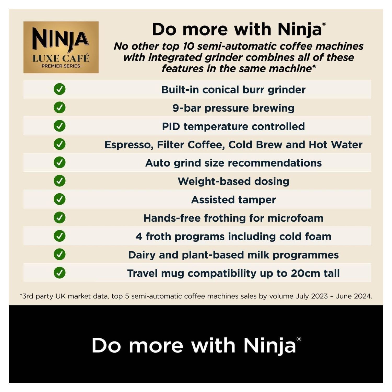 Upgrade your mornings with the Ninja Luxe Café Premier – the all-in-one coffee machine that combines convenience, style, and professional results.