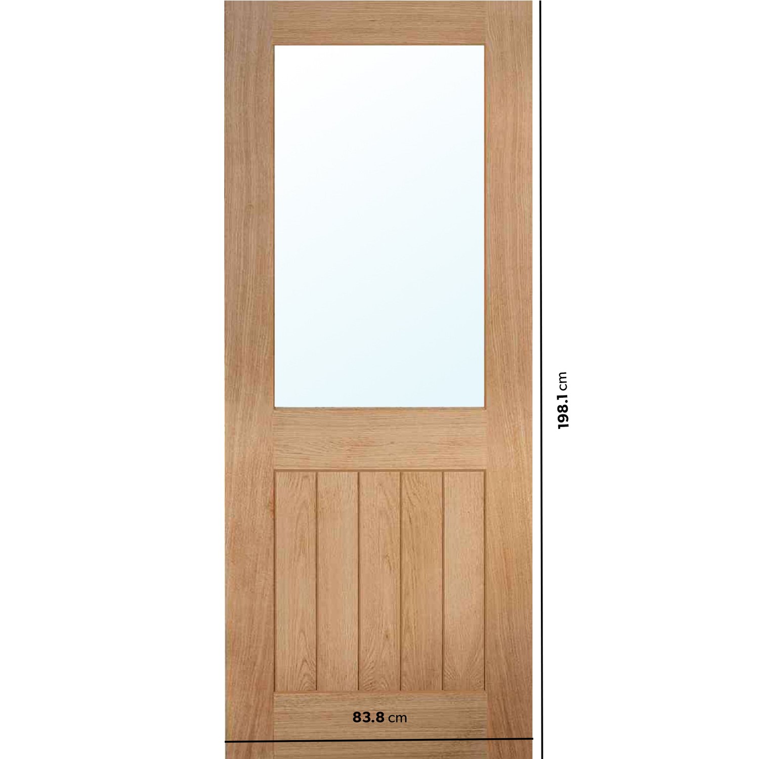 Bring a timeless charm to your home with this classic cottage-style glazed door, perfect for traditional and modern interiors. Its large clear glass panel enhances natural light flow, creating a bright and welcoming space. Crafted with real oak veneer and pre-varnished for a rich, warm finish, the lower section showcases a five-panel tongue-and-groove effect for an authentic, heritage-inspired look.