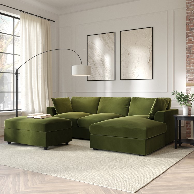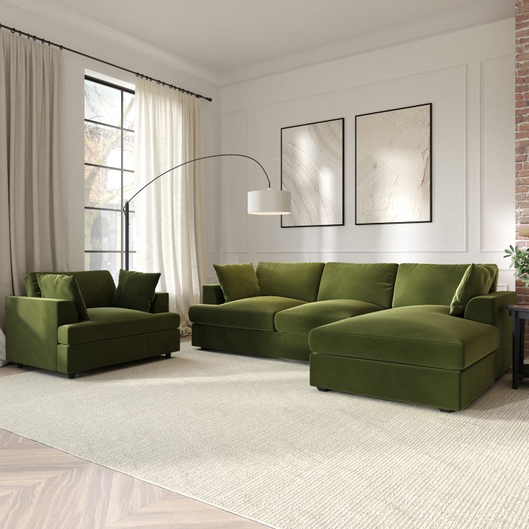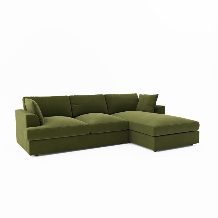 Beautifully crafted in a soft olive green velvet, the August 4-seater corner sofa brings big comfort and modern luxury to your home. With a deep chaise offering the perfect place to stretch out and relax, this spacious sofa is ideal for family homes. The calming olive green velvet is durable and easy to clean, combined with a minimalistic silhouette that blends seamlessly with any interior style.