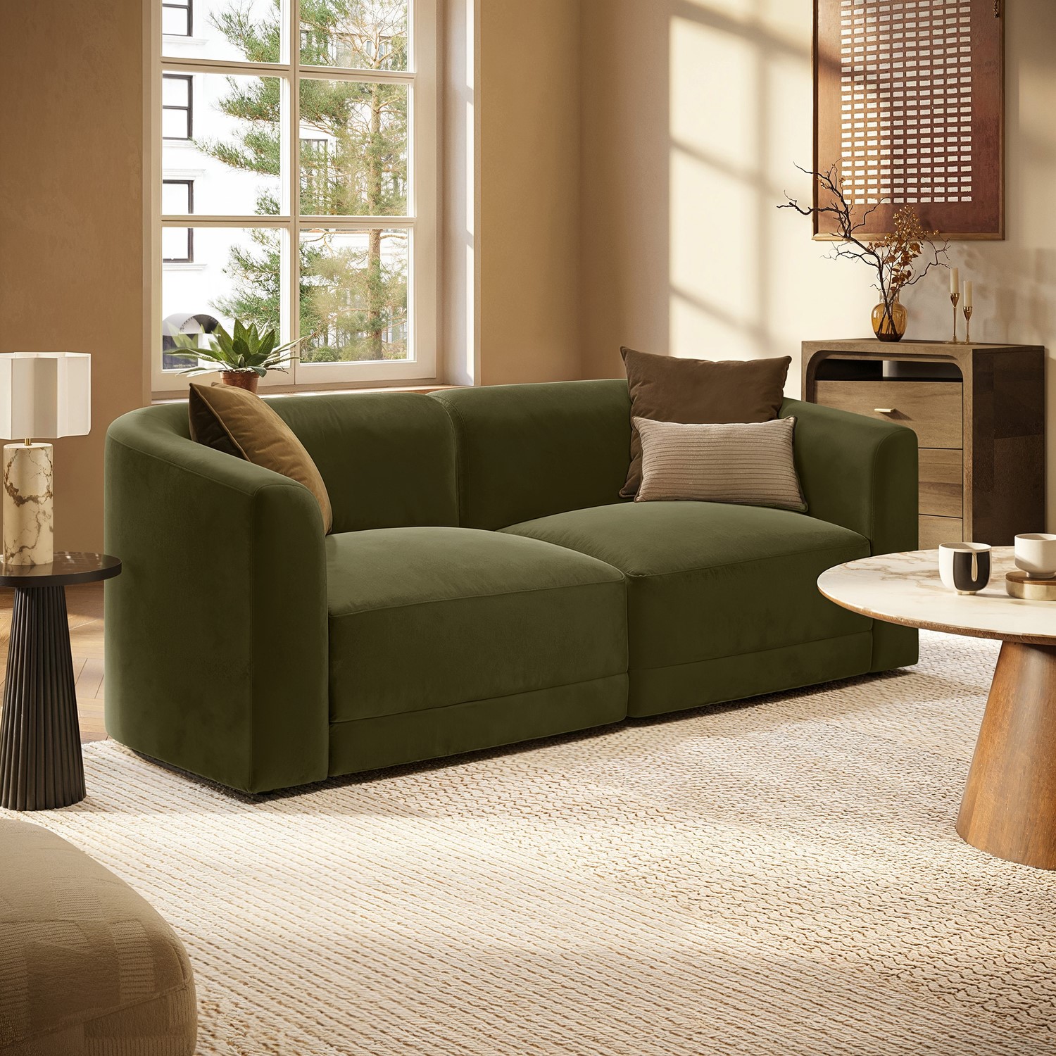The Laine 3-Seater Modular Sofa combines modern design with gentle curves and a bold, rounded silhouette. Upholstered in soft, durable olive green velvet, it adds a calm, inviting splash of colour to any living space. Designed as a family sofa, it features deep seats, a low-profile modular form, and foam with pocket springs for superior comfort and support. Spacious, stylish, and versatile, this sofa is the perfect place to unwind.