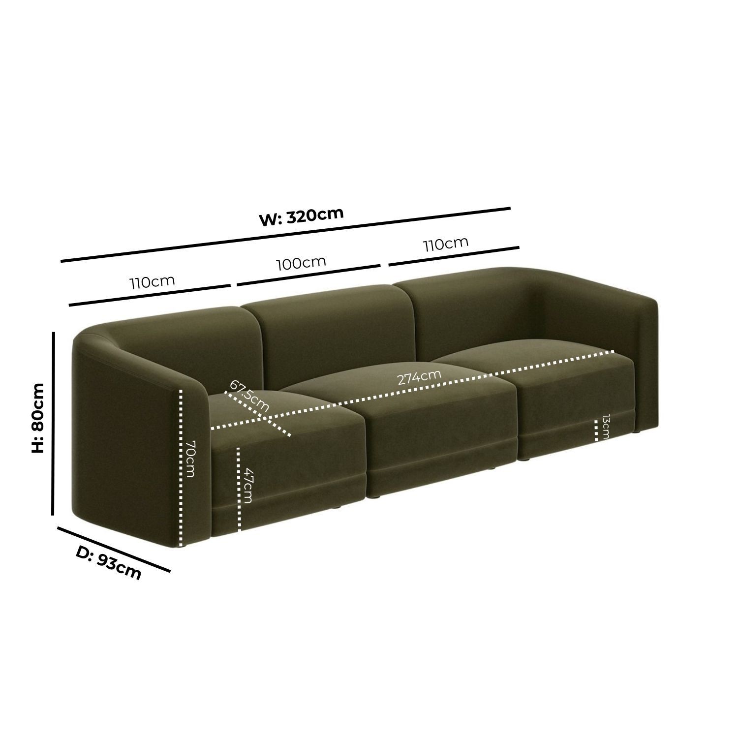 - Dimensions: W320 x D93 x H80 cm