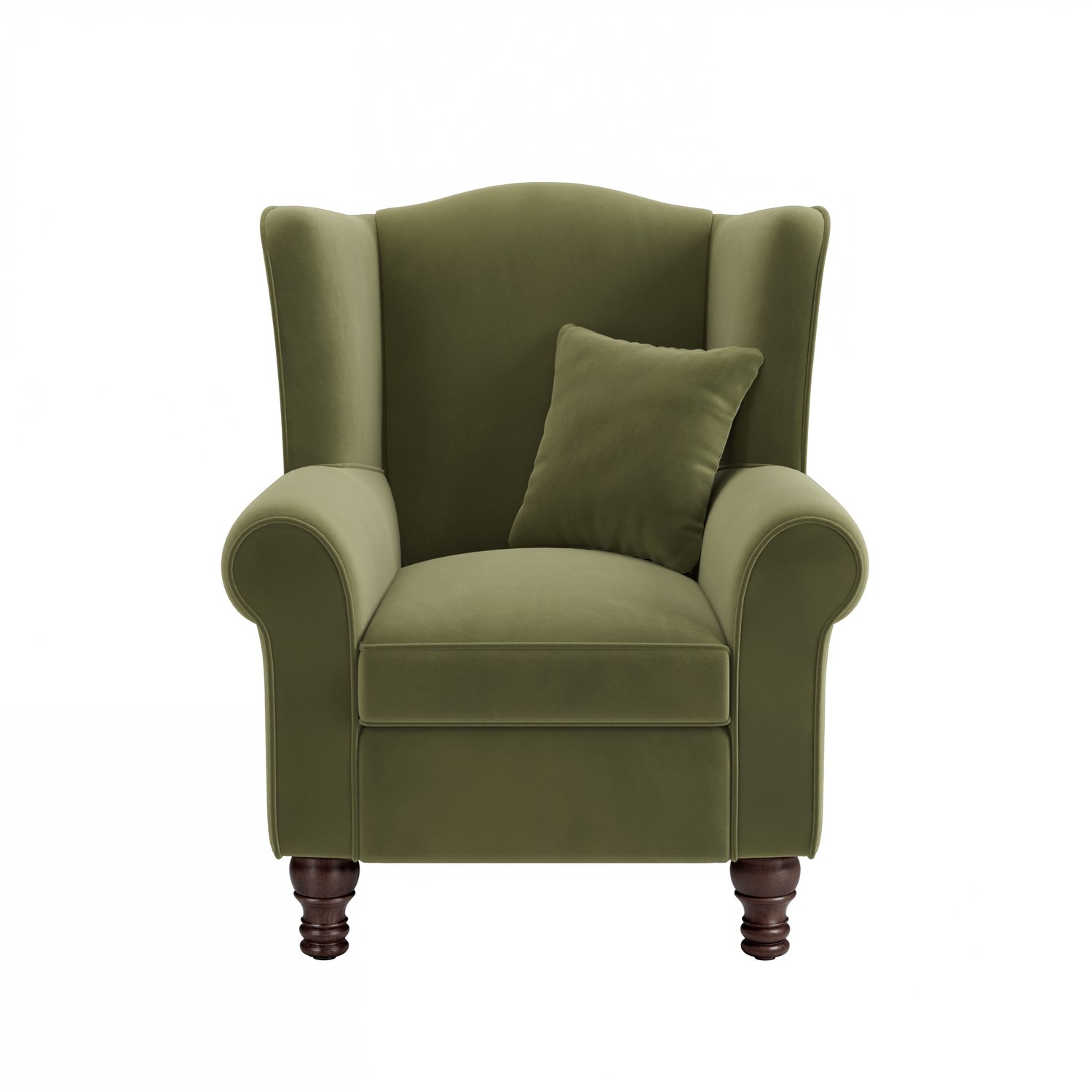 Classic design: Upholstered in soft, olive green velvet, it features a wingback silhouette and smooth curves for a refined, elegant look that suits both traditional and modern interiors.