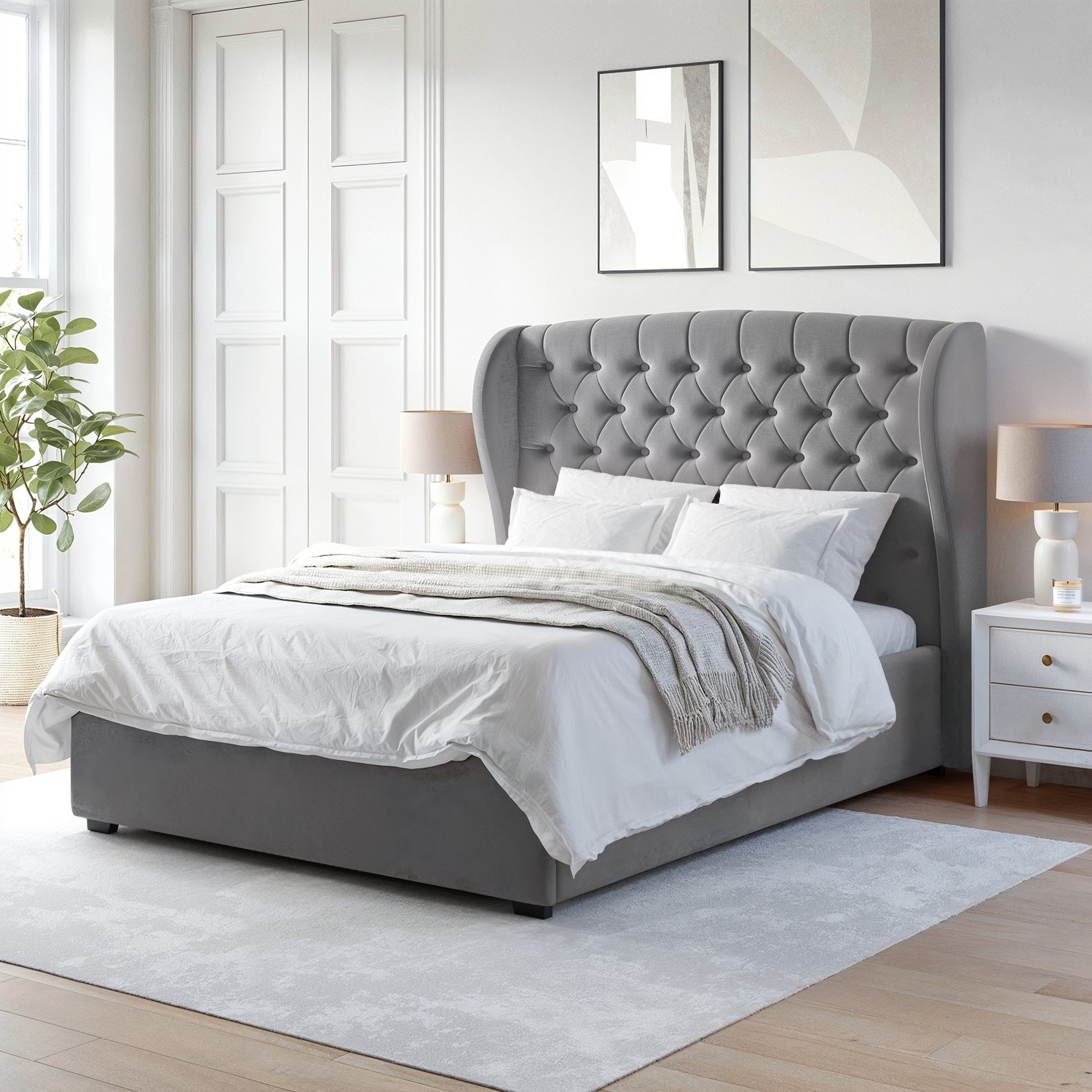 Velvet Upholstery: Upholstered in soft, to touch grey velvet, this bed offers plush comfort while exuding an effortlessly chic appearance