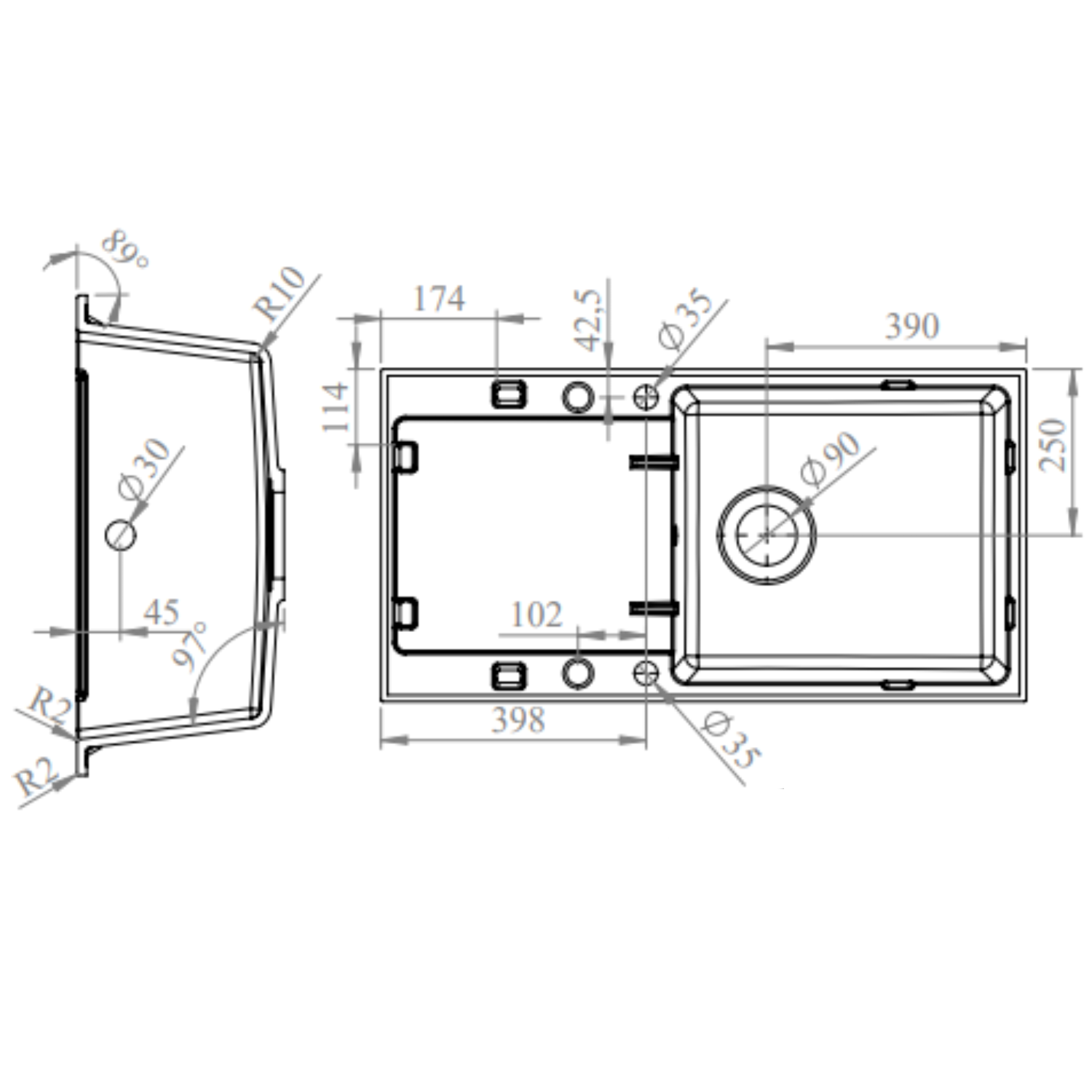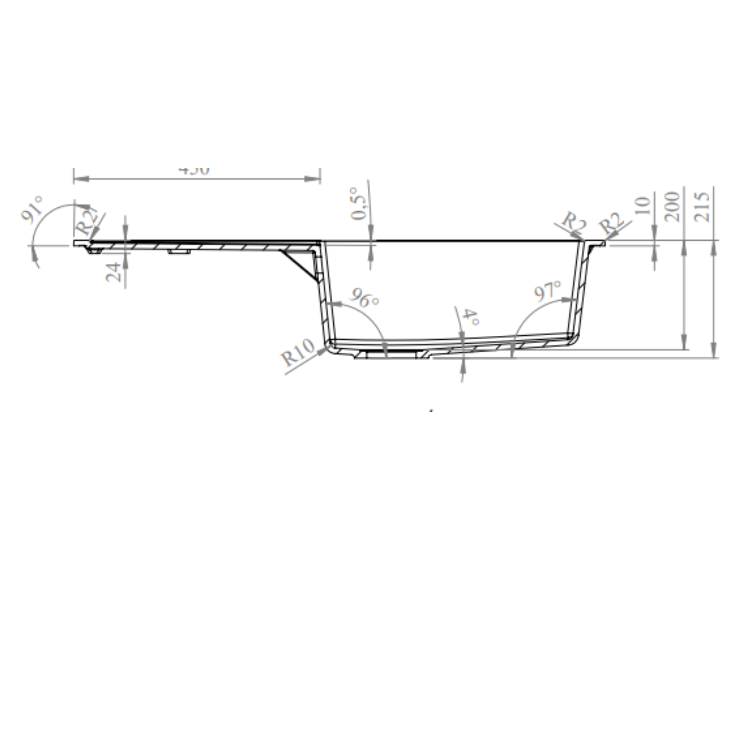 - Sink Material thickness: 12mm