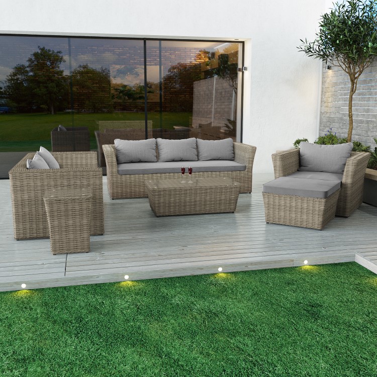 Add a touch of style to your garden or patio with this multifunctional garden sofa set. It’s ideal for get-togethers and boasts luxurious, deep-filled cushions. Not to mention, a stylish coffee table and side table to enhance the overall look. Made from synthetic rattan, this set will withstand all weather.