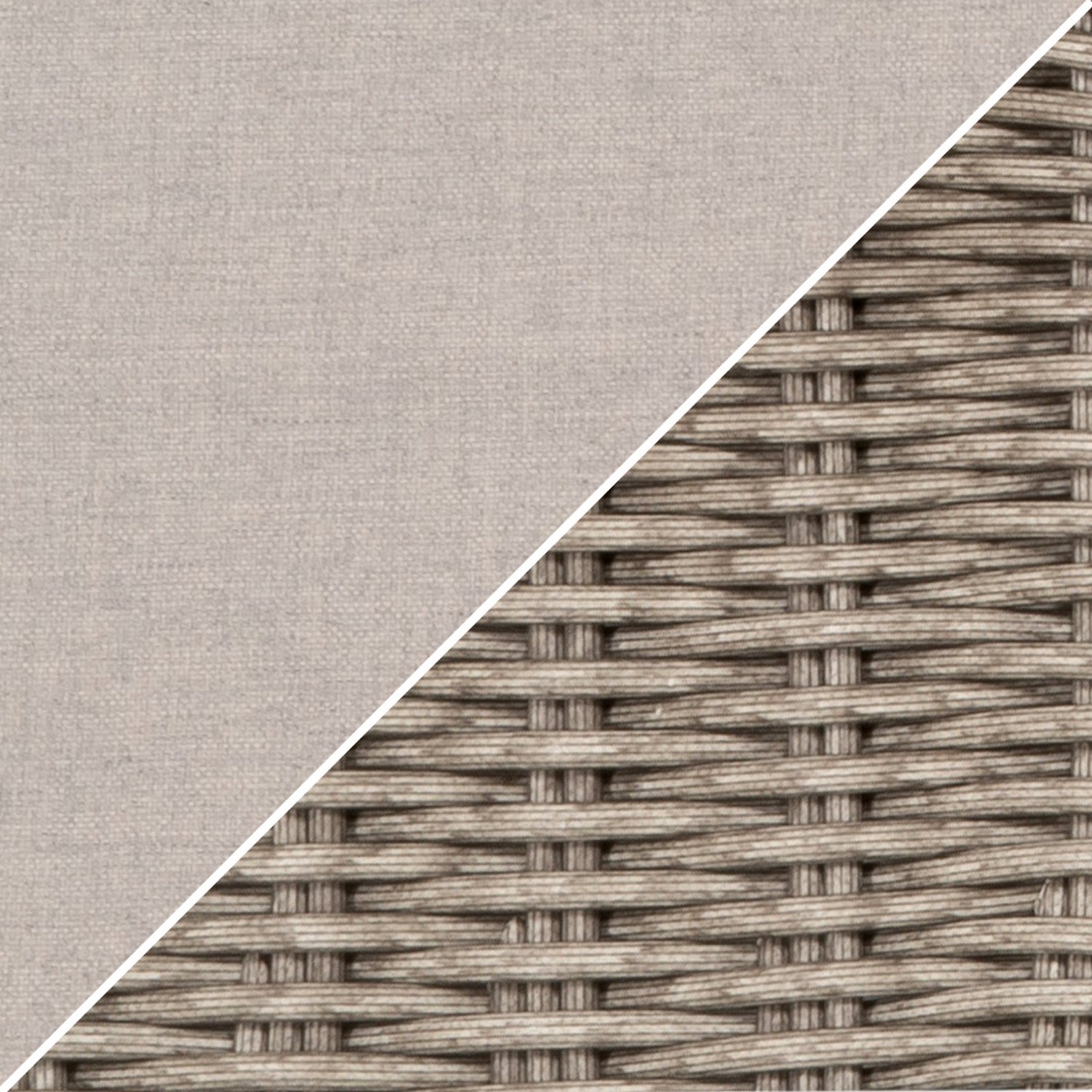 - Finish: Woven flat rattan, upholstery and powdered-coated (frames)
